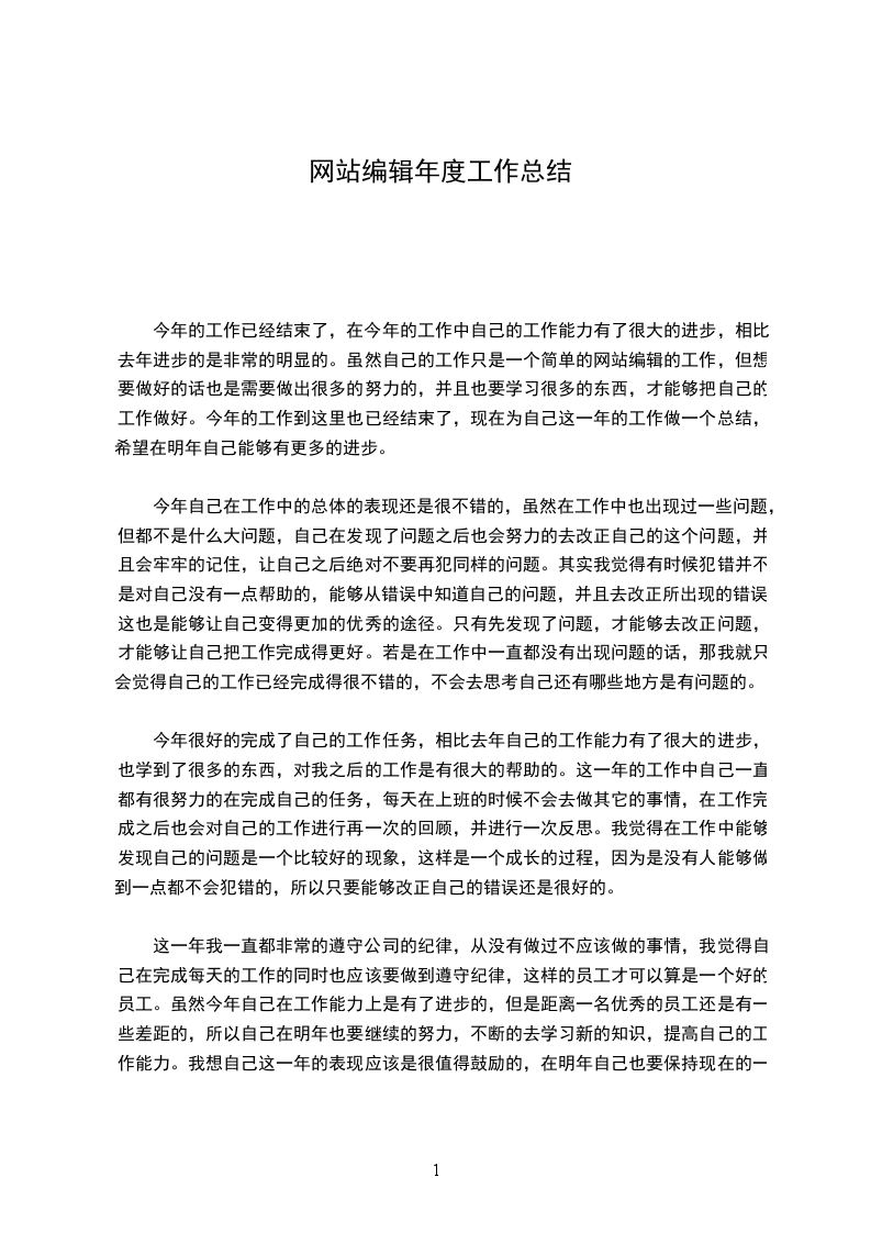 今年的工作已经结束了,在今年的工作中自己的工作能力有了很大的进步,相比去年进步的是非常的明显的。虽然自己的工作只是一个简单的网站编辑的工作,但想要做好的话也是需要做出很多的努力的,并且也要学习很多的东西,才能够把自己的工作做好。今年的工作到这里也已经结束了,现在为自己这一年的工作做一个总结,希望在明年自己能够有更多的进步。