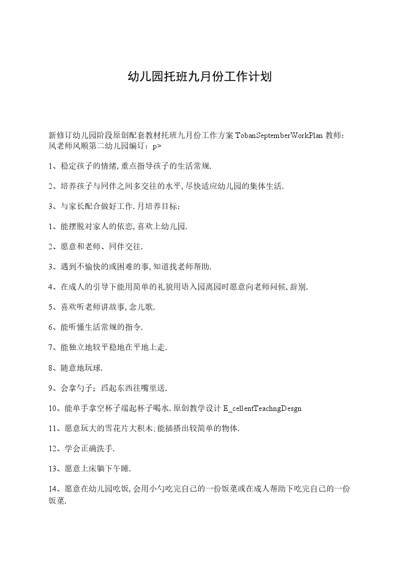 1、能高高兴兴上幼儿园,了解、熟悉幼儿园的生活。