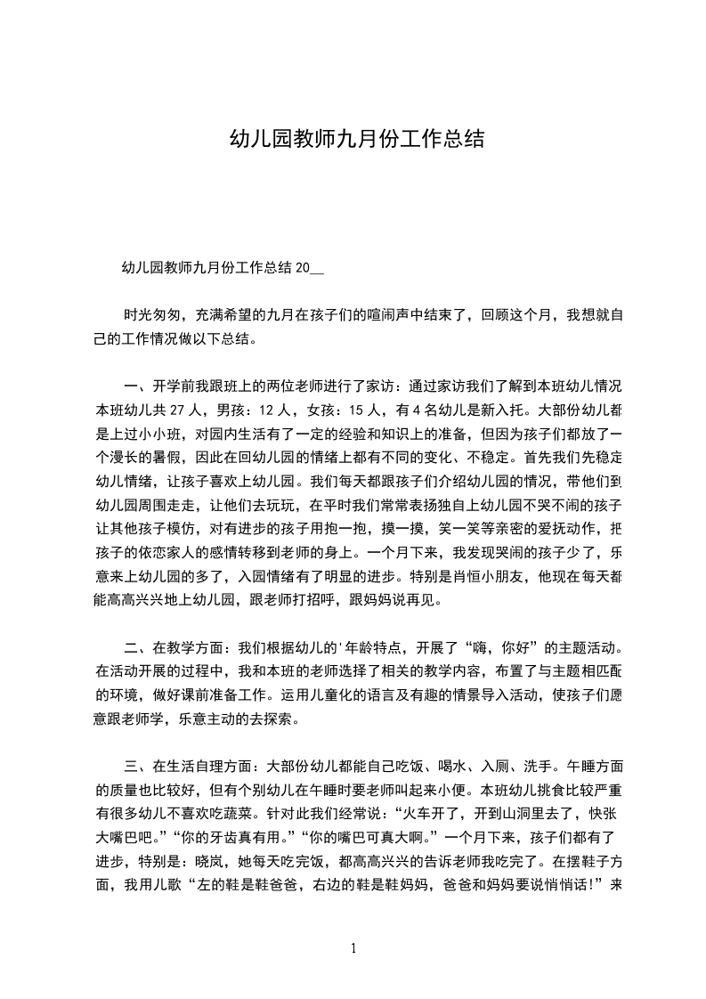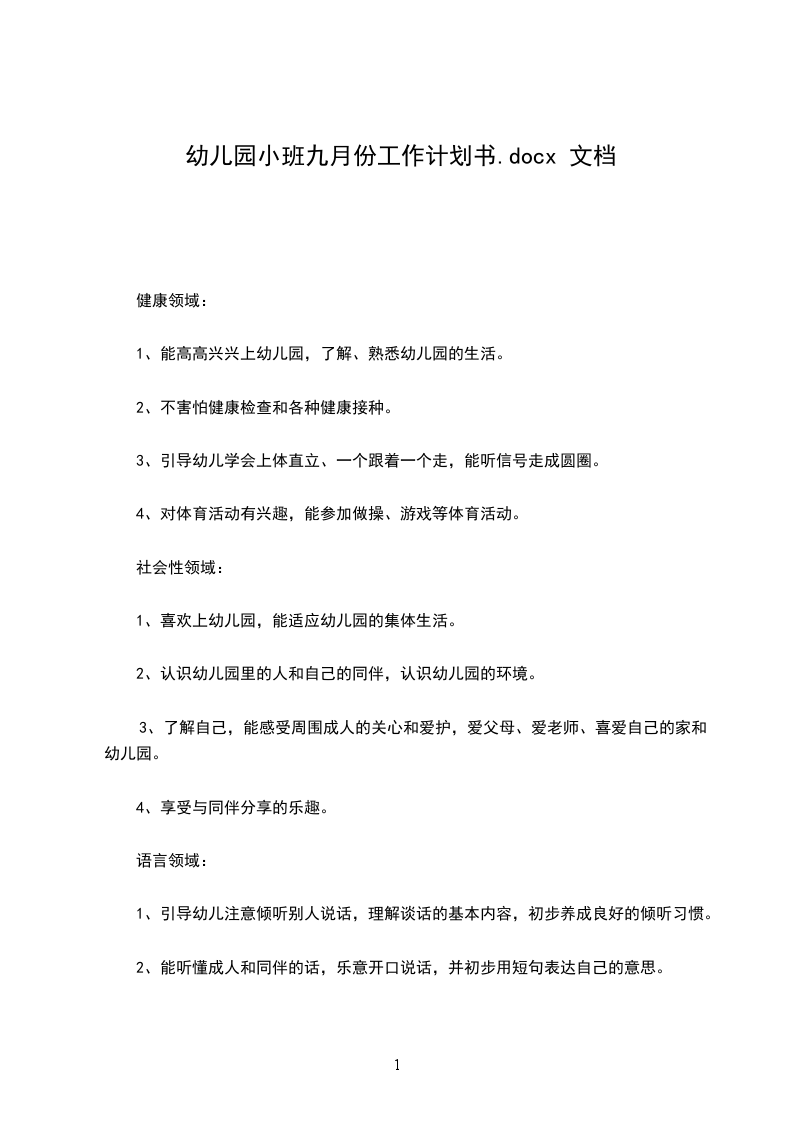 1、喜欢上幼儿园,能适应幼儿园的集体生活。