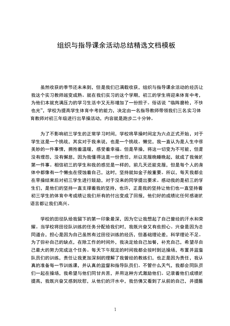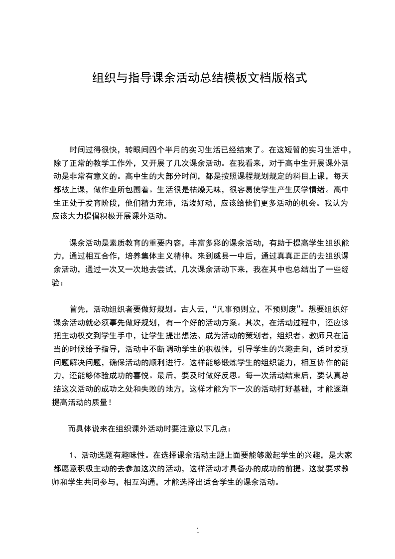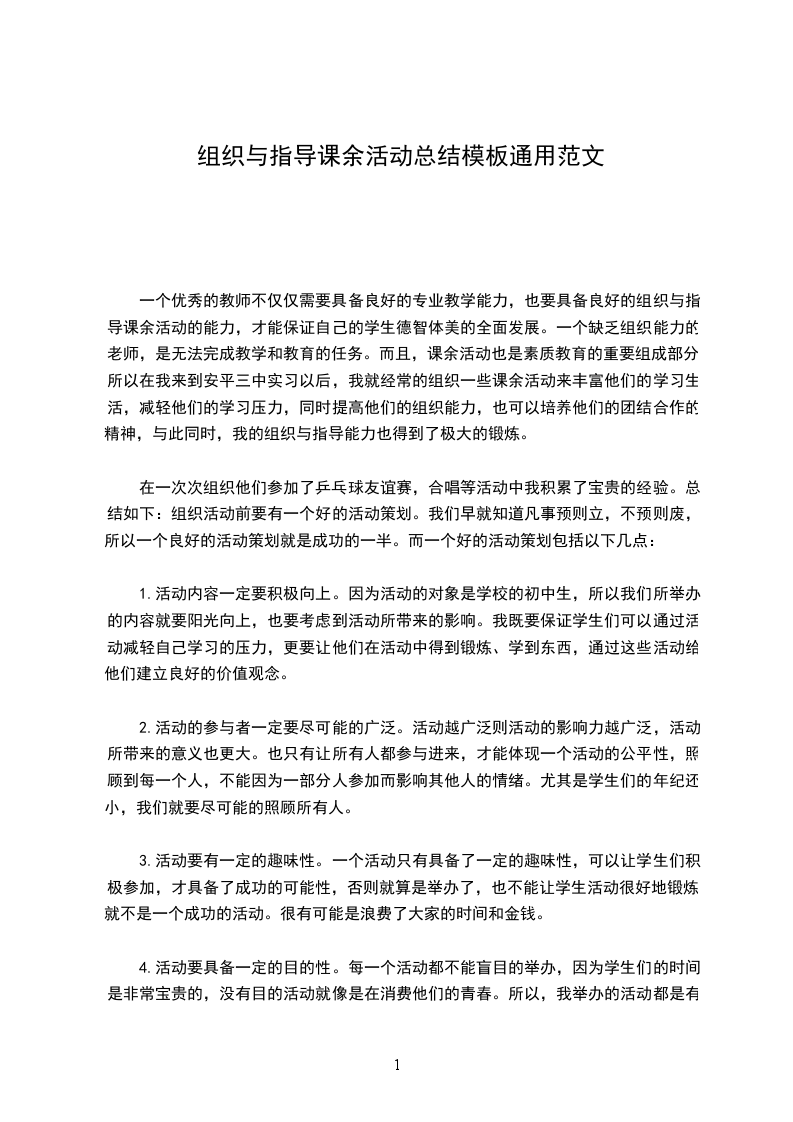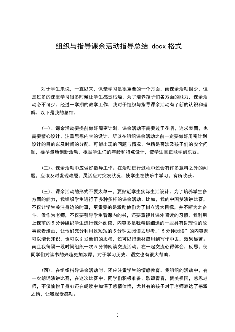 总之,积极组织学生广泛开展课外活动,对于增长学生的知识和能力,丰富学生的精神生活和全面发展学生的良好个性都有着重要的作用,同时.对班级管理和集体教育以及学生进行自我教育也都有着极其重要的意义。