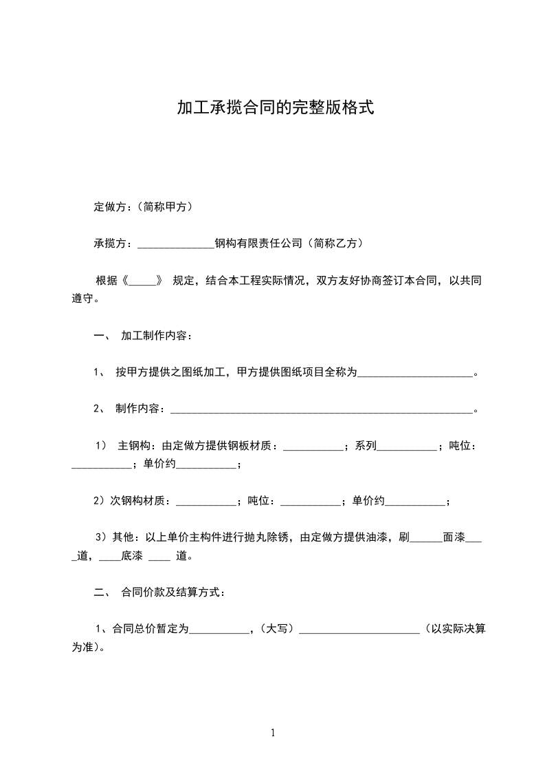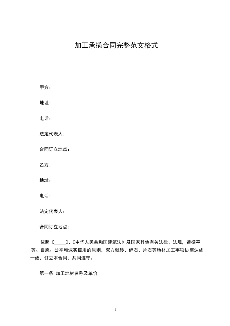 第一条 加工地材名称及单价
