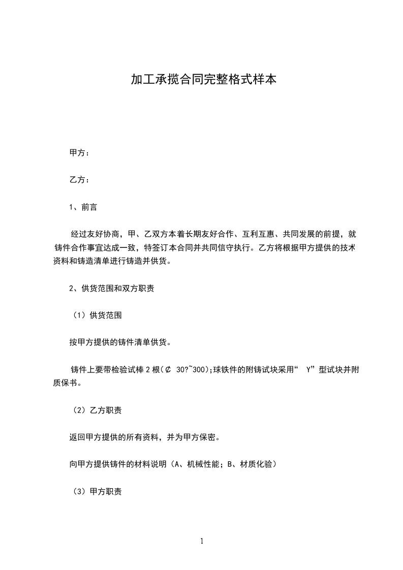 第二条 机械及原材料提供方式甲方提供原材料(山碴)到碎石厂现场,提供所有设备(含碎石设备_____台、装载机_____台、破碎锤_____台、挖掘机____台、电力设施、生活设施),由乙方利用路基挖方料(山碴)进行加工成甲方所需要的砂、碎石产品。
