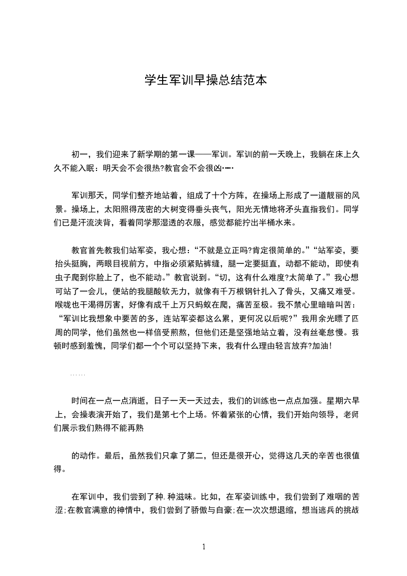 教官首先教我们站军姿,我心想:“不就是立正吗?肯定很简单的。”“站军姿,要抬头挺胸,两眼目视前方,中指必须紧贴裤缝,腿一定要挺直,动都不能动,即使有虫子爬到你脸上了,也不能动。”教官说到。“切,这有什么难度?太简单了。”我心想。可站了一会儿,便站的我腿酸软无力,就像有千万根钢针扎入了骨头,又痛又难受。喉咙也干渴得厉害,好像有成千上万只蚂蚁在爬,痛苦至极。我不禁心里暗暗叫苦:“军训比我想象中要苦的多,连站军姿都这么累,更何况以后呢?”我用余光瞟了四周的同学,他们虽然也一样倍受煎熬,但他们还是坚强地站立着,没有丝毫怠慢。我顿时感到羞愧,同学们都一个个可以坚持下来,我有什么理由轻言放弃?加油!