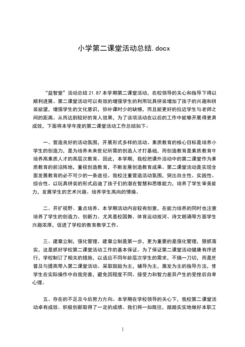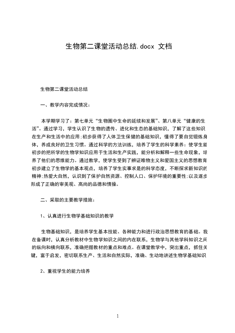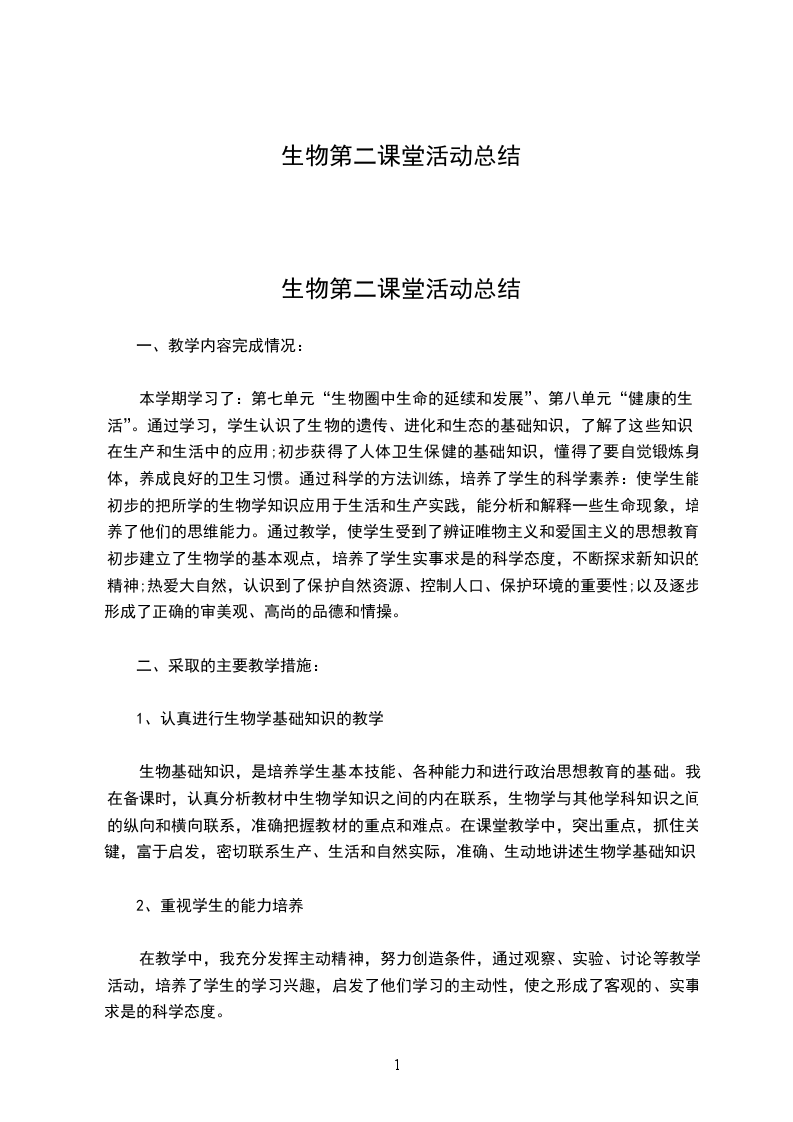 [生物第二课堂活动总结]