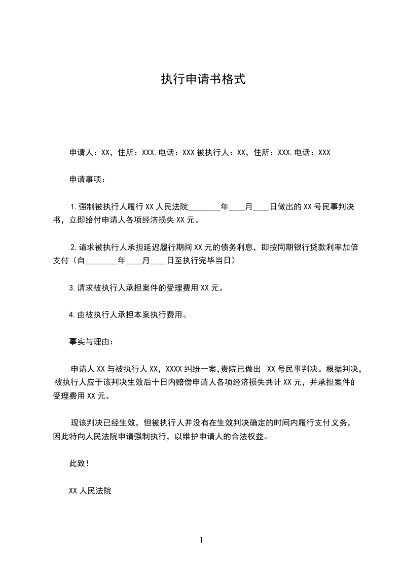 申请人:XX,住所:XXX.电话:XXX被执行人:XX,住所:XXX.电话:XXX