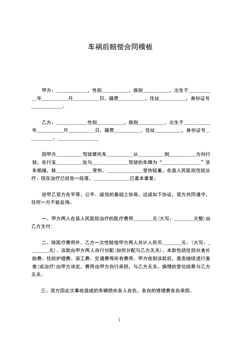B姓名:___________________驾驶证档案编号或住址:___________________电话:___________________交通方式:___________________车号:________________保险公司名称或保险凭证号:________________