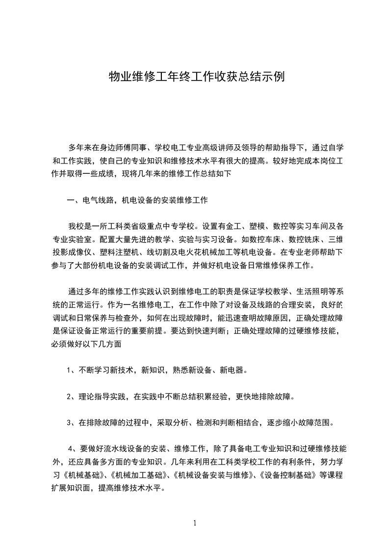 总之,在多年的维修电工工作中,自己利用所学的技术知识在维修工作实践中做了一些行之有效的工作,具备了一定的维修技术工作能力。但是仍存在文化水平较低等一些不足。在今后的工作中,自己要克服年龄大学习较吃力的困难,努力学习新技术,新知识,力争自己的技术水平能够进一步提高。