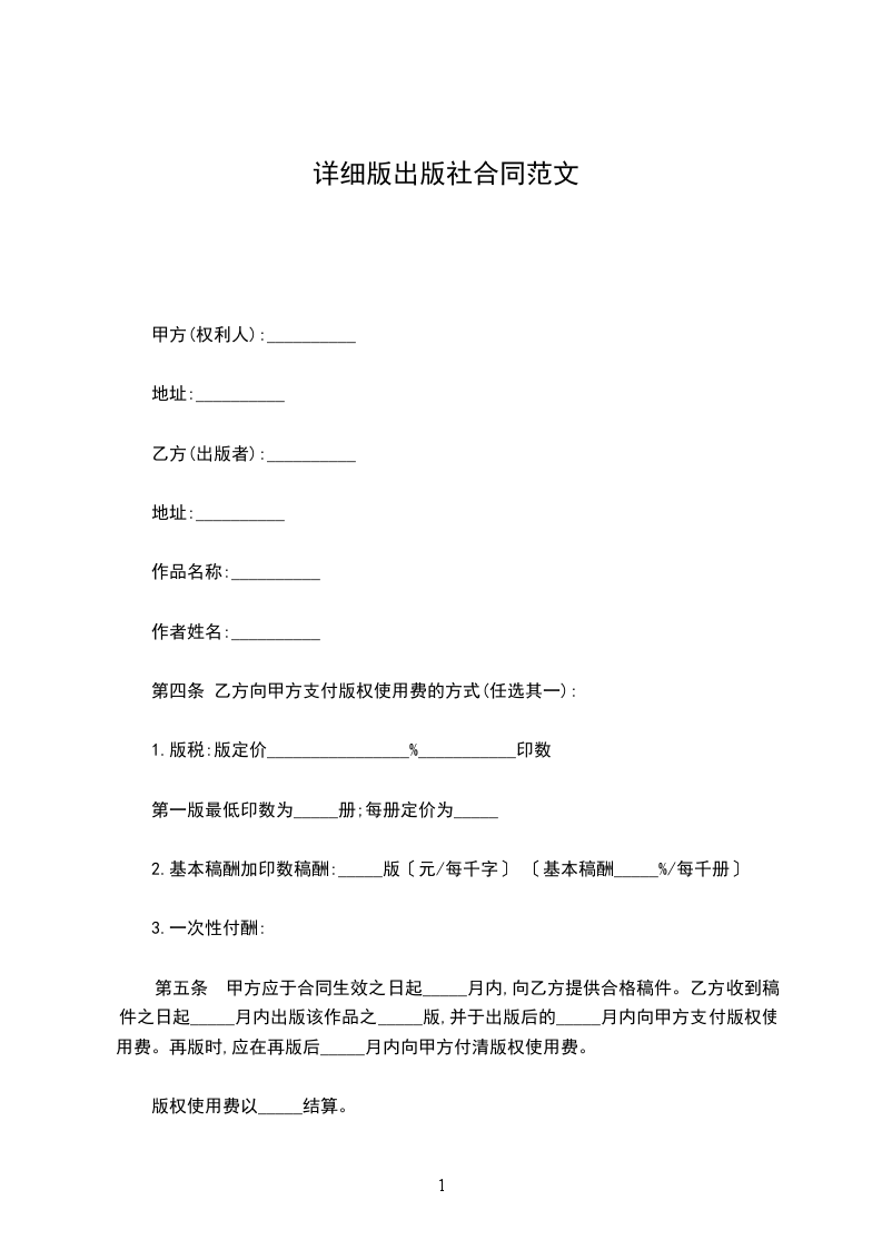 第四条 出版者将按照国家规定的稿酬办法向著者(或译者)支付稿酬。基本稿酬定为每千字 元。书稿发排后预付稿酬支付稿酬 元,在见到样书后30天内结清全部稿酬。