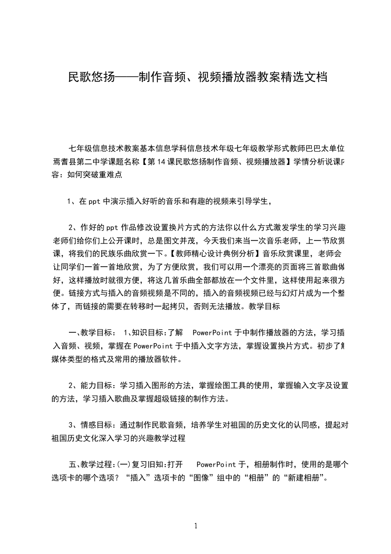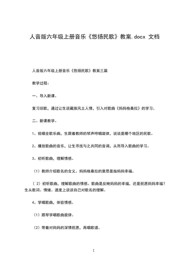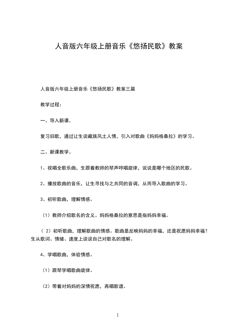 人音版六年级上册音乐《悠扬民歌》教案三篇