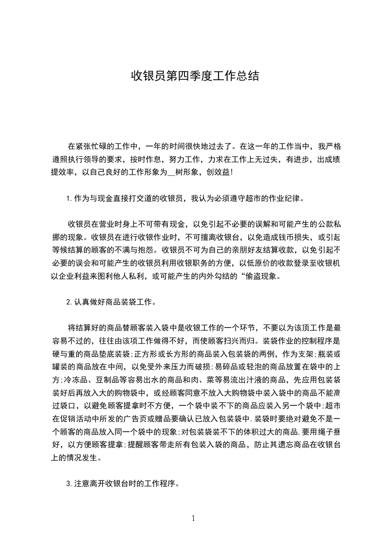 1.作为与现金直接打交道的收银员,我认为必须遵守超市的作业纪律。