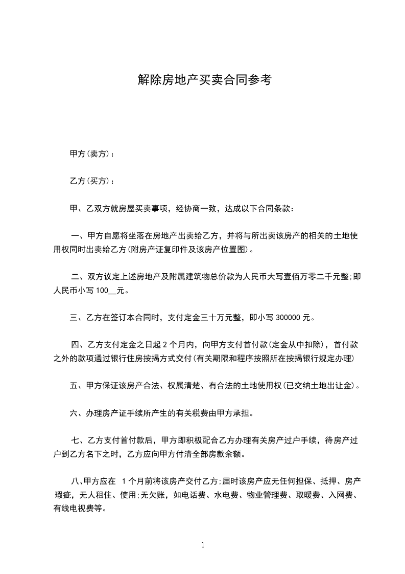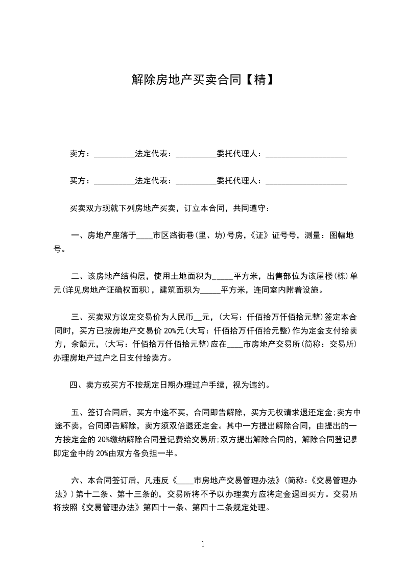 一、乙方将________年________月________日购买的____公寓____号和____号房屋退还给甲方。