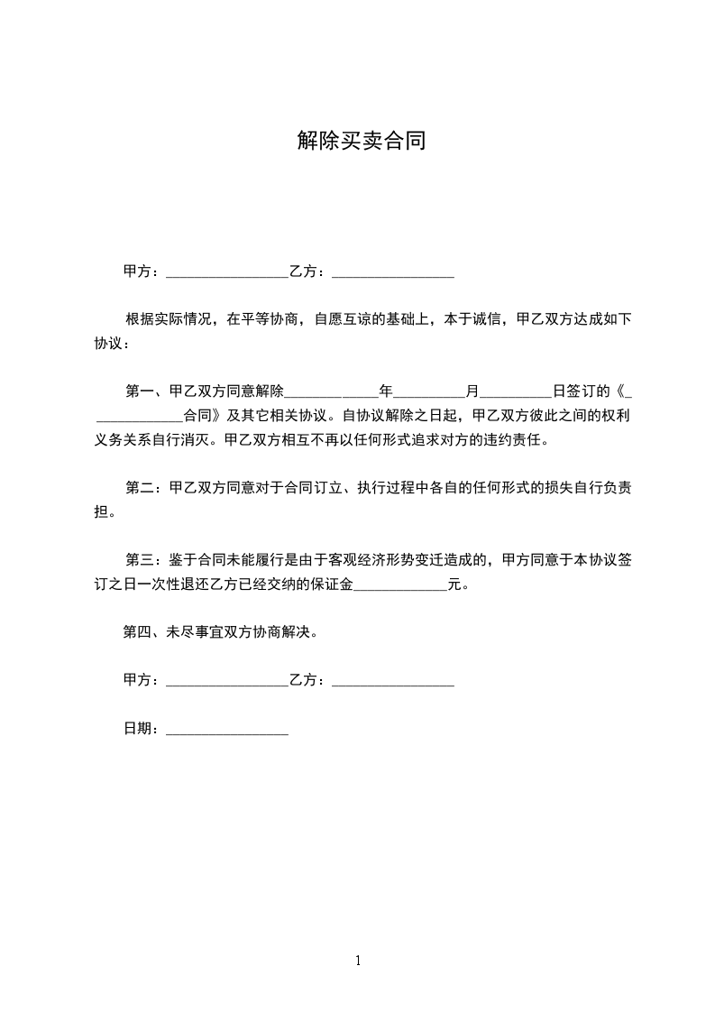 甲乙双方通过友好协商,就乙方申请退还已购买甲方房屋的退房,解除原房屋买卖合同的相关事宜达成如下协议: