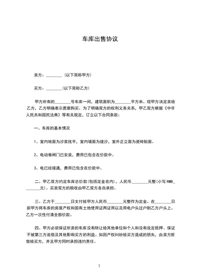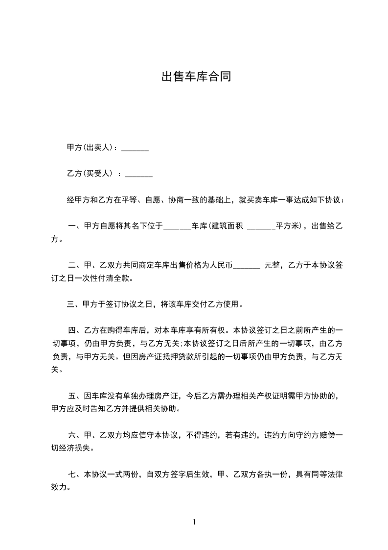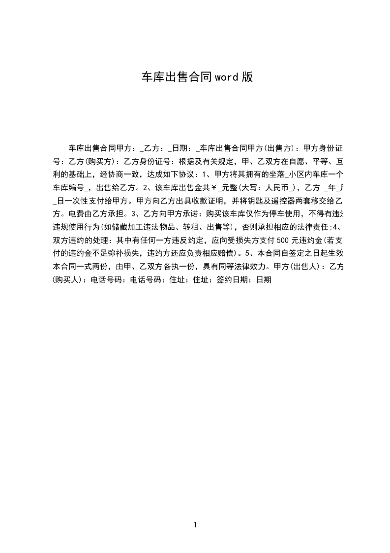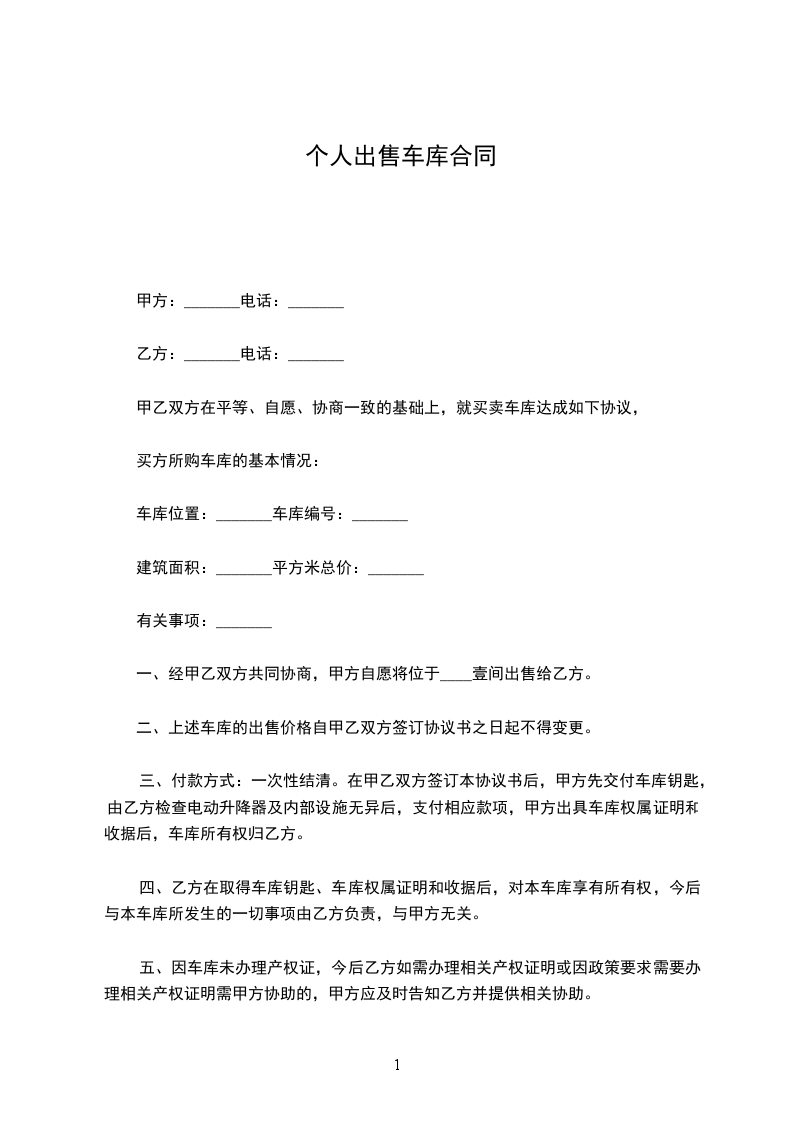 甲方(车库卖方):_______________电话:_______________