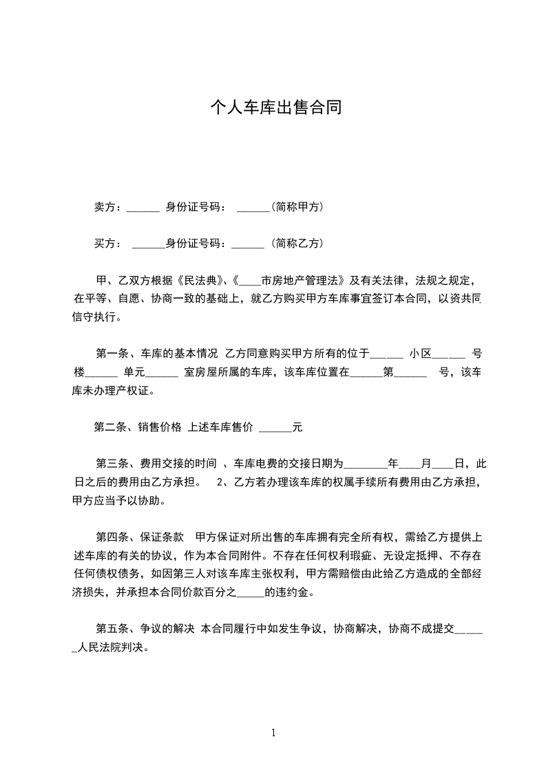 一、经甲乙双方共同协商,甲方自愿将位于__________壹间出售给乙方。