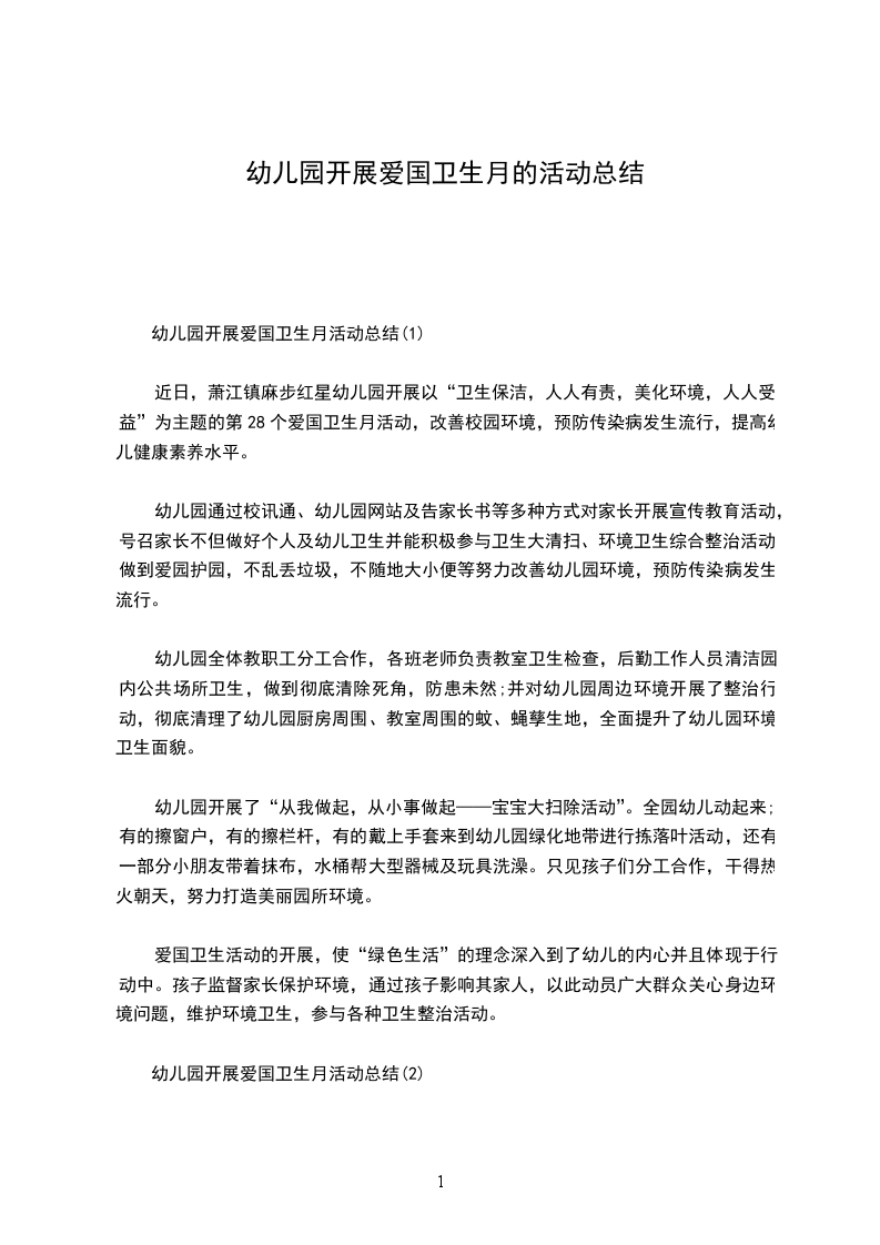 幼儿园开展爱国卫生月活动总结(1)