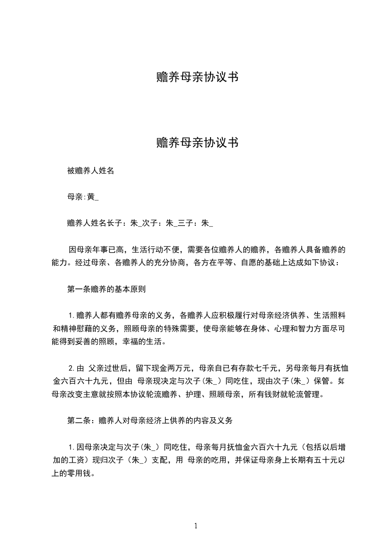 1、根据甲方的意见和该家庭的特殊情况,乙方和丙方通过协商一致同意两位老人分别由乙方和丙方各自承担赡养责任,即乙方和丙方按月轮换负责老人的生活(包括雇保姆工资和生活费用)
