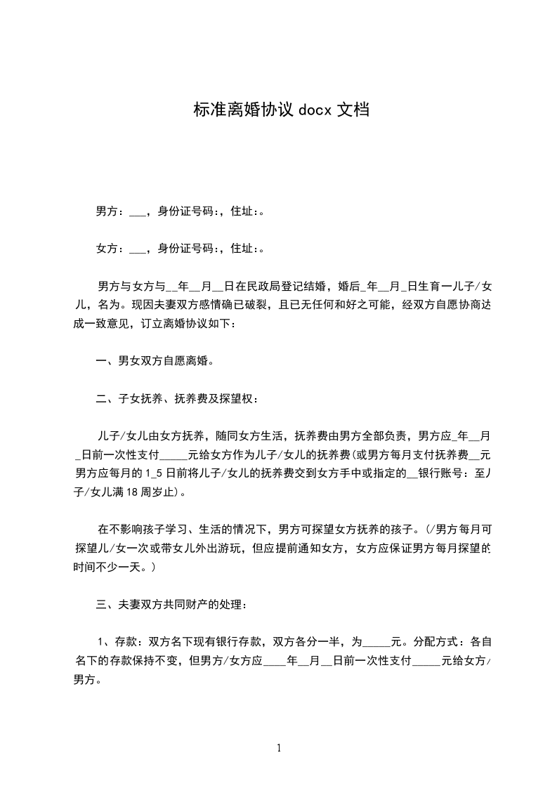 一、____________与____________自愿离婚。