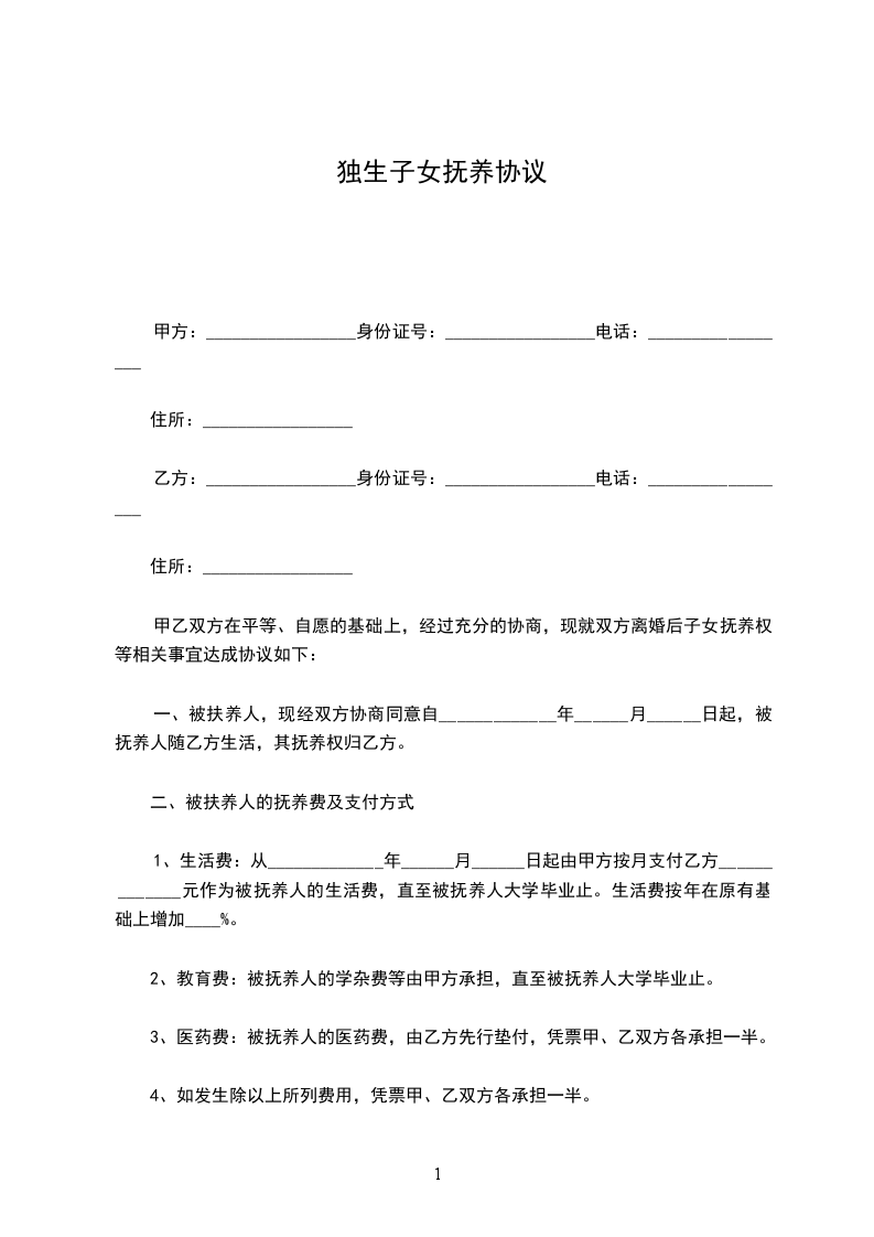 1、丙方单独居住的,甲、乙方每月给付丙方赡养费_____元。