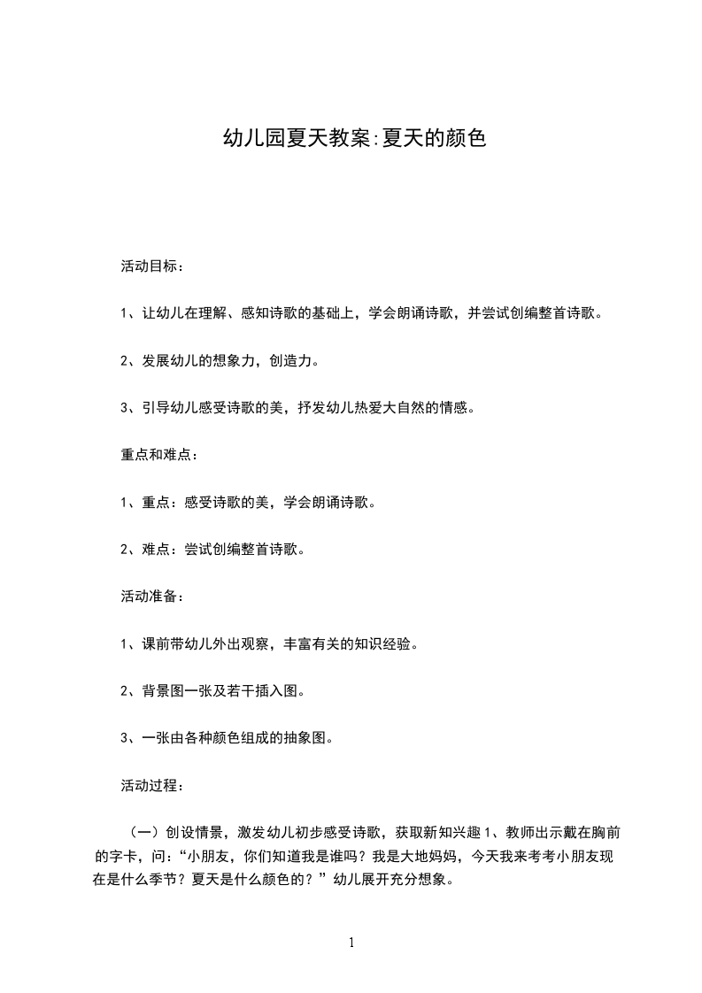 幼儿园大班夏天教案:《走进夏天》