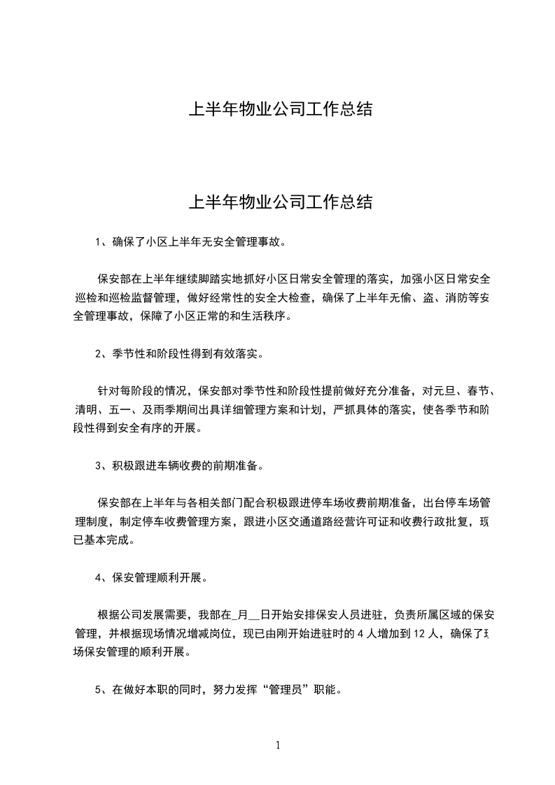 根据公司发展需要,我部在_月__日开始安排保安人员进驻,负责所属区域的保安管理,并根据现场情况增减岗位,现已由刚开始进驻时的4人增加到12人,确保了现场保安管理的顺利开展。