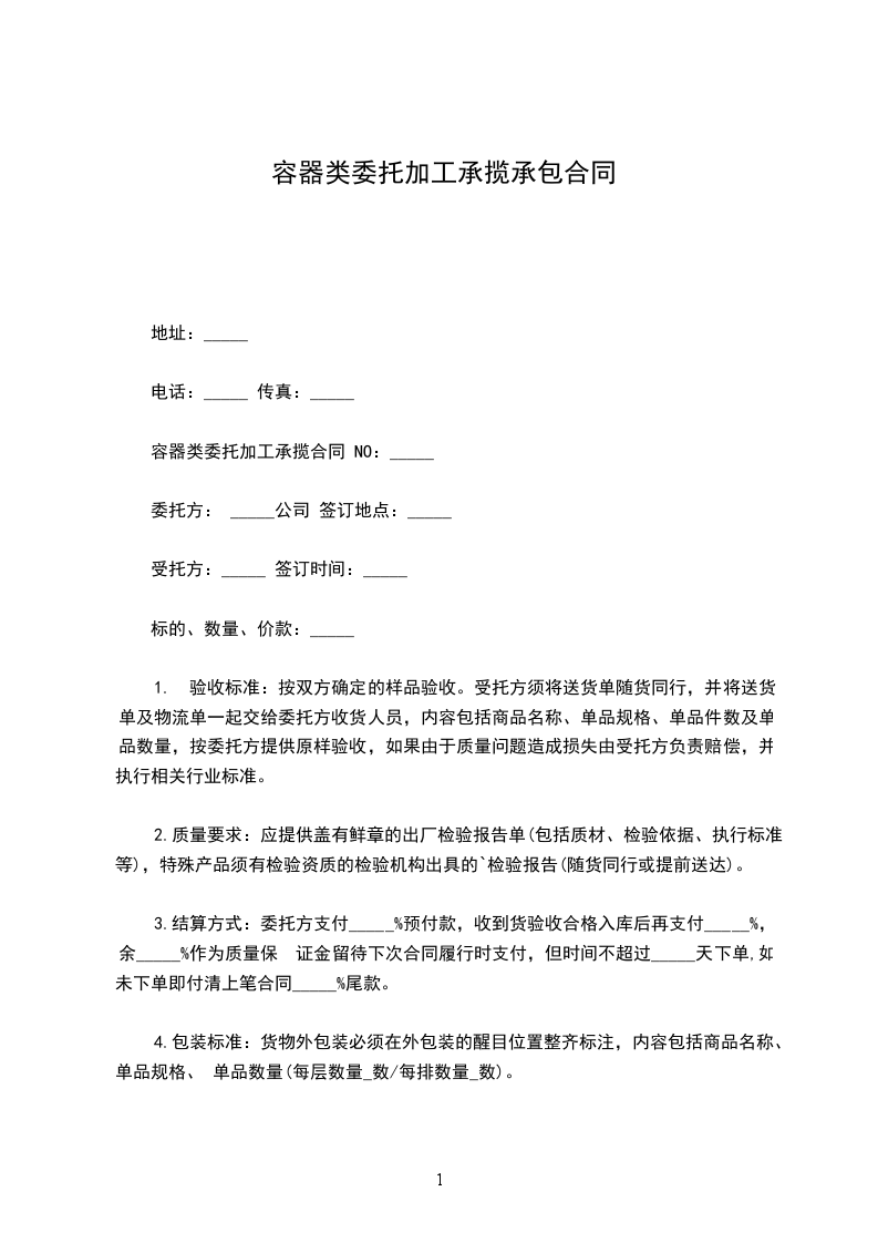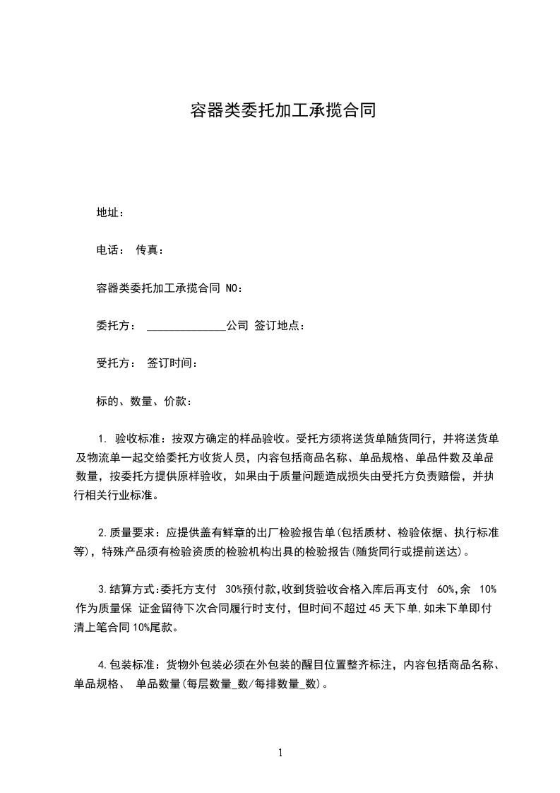 容器类委托加工承揽合同 NO: