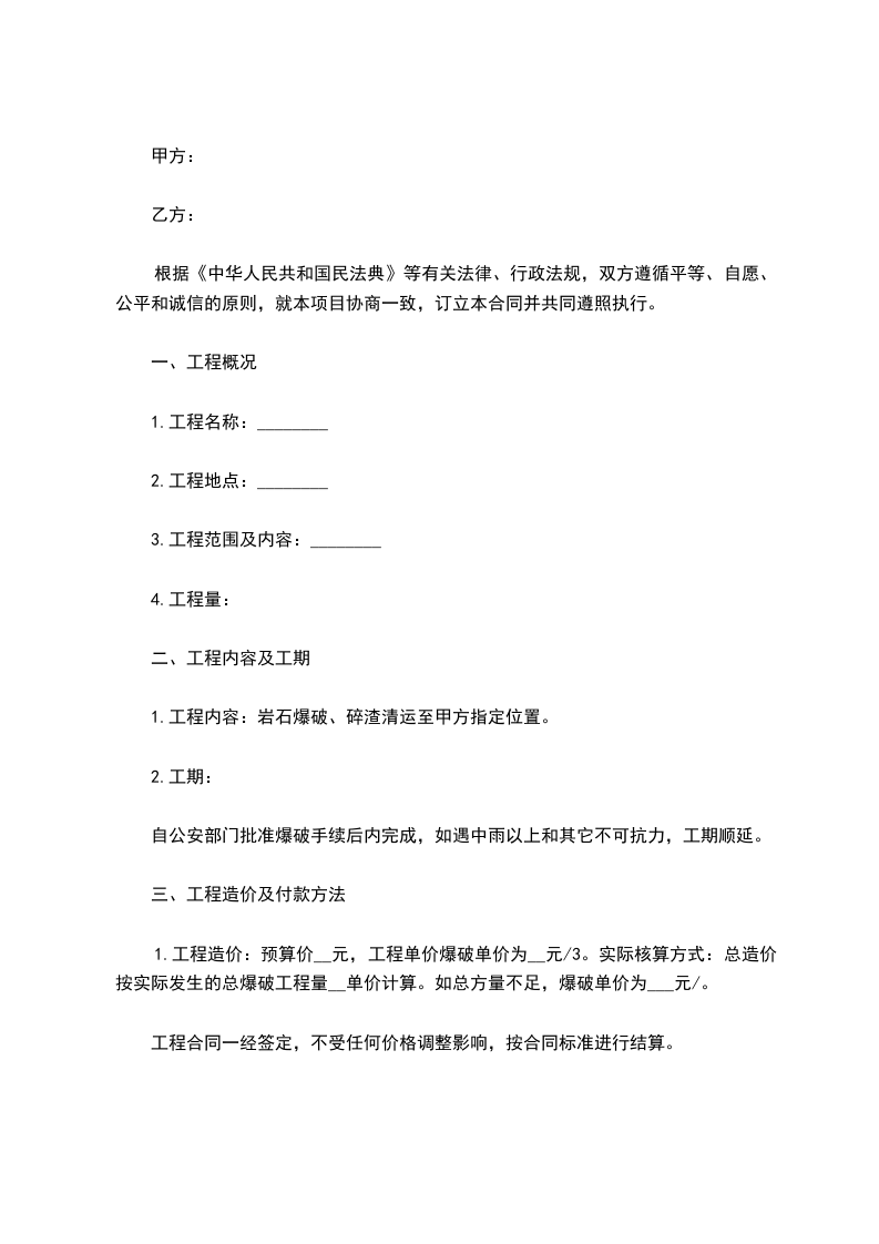 爆破工程施工合同范文一