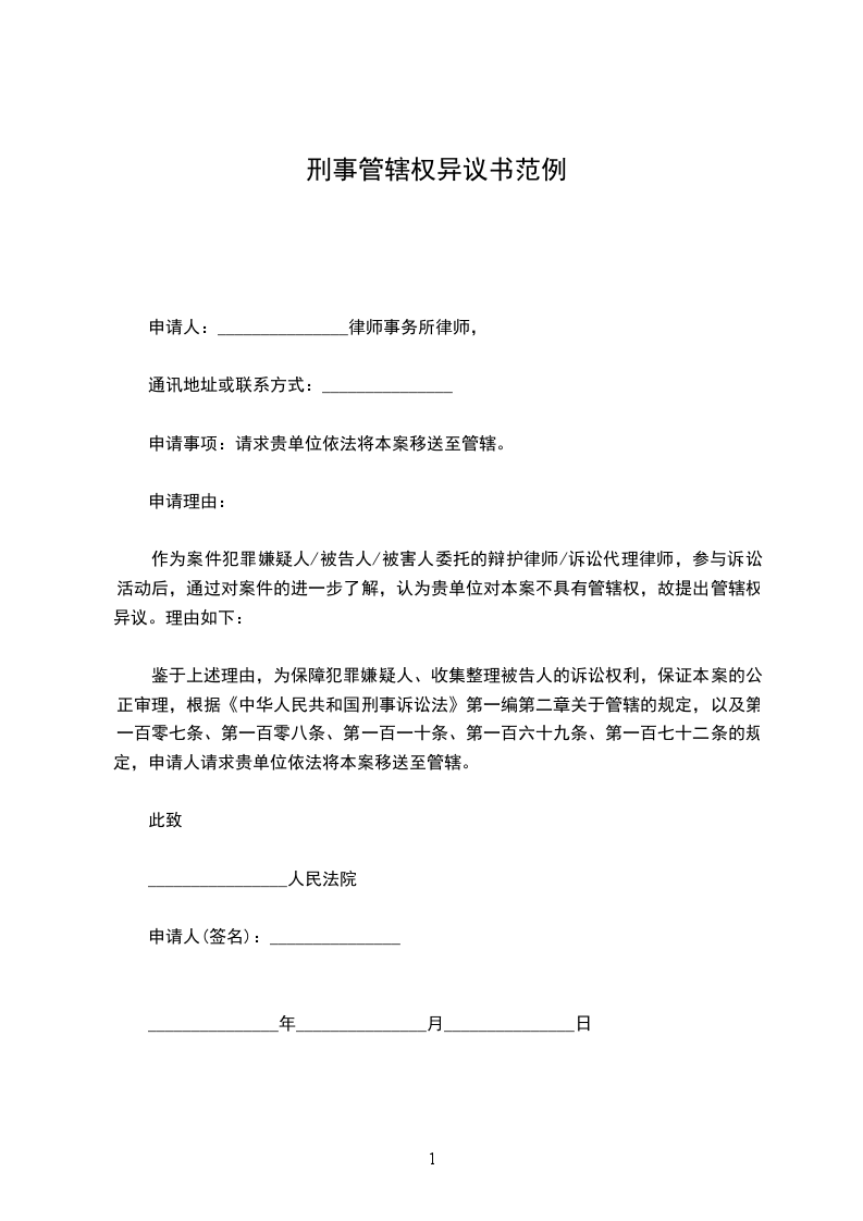 作为案件犯罪嫌疑人/被告人/被害人委托的辩护律师/诉讼代理律师,参与诉讼活动后,通过对案件的进一步了解,认为贵单位对本案不具有管辖权,故提出管辖权异议。理由如下: