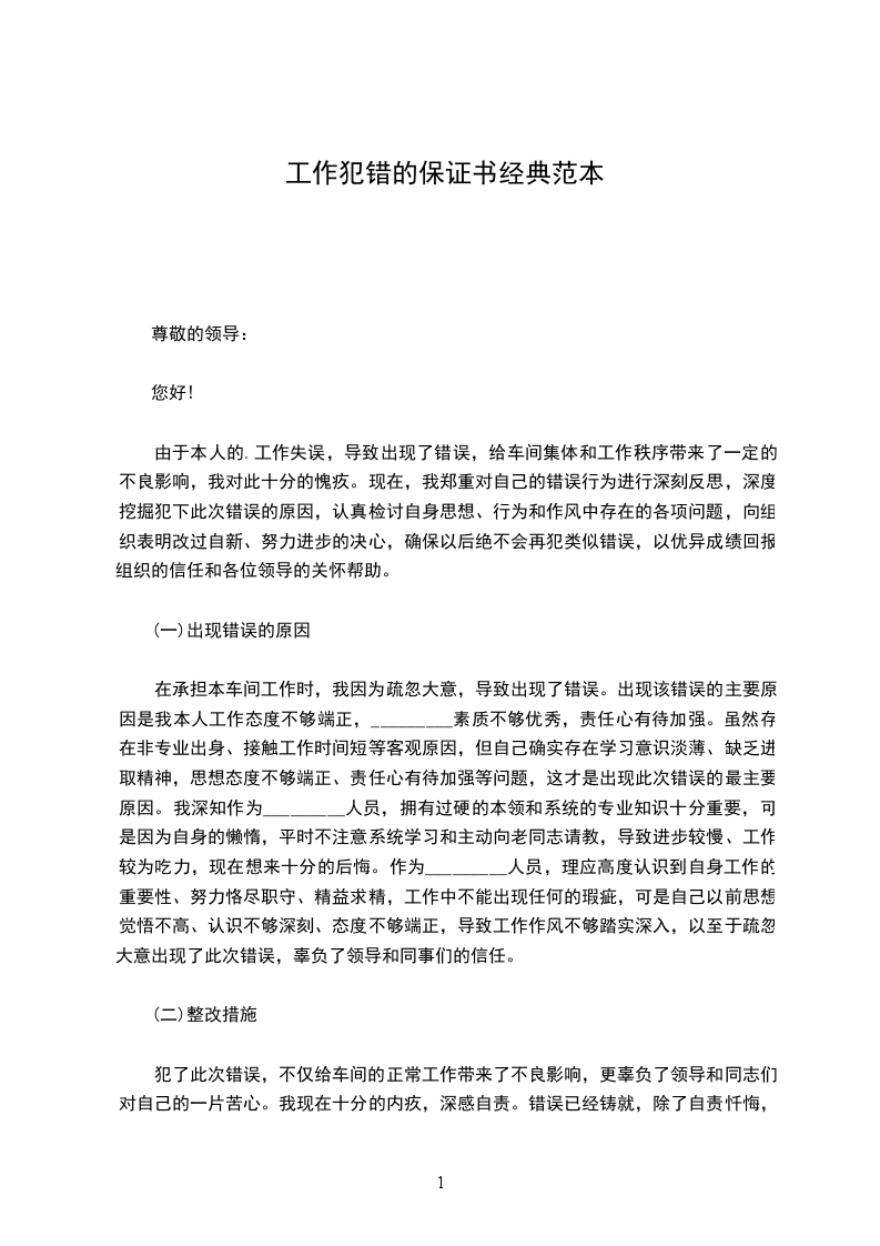 由于本人的.工作失误,导致出现了错误,给车间集体和工作秩序带来了一定的不良影响,我对此十分的愧疚。现在,我郑重对自己的错误行为进行深刻反思,深度挖掘犯下此次错误的原因,认真检讨自身思想、行为和作风中存在的各项问题,向组织表明改过自新、努力进步的决心,确保以后绝不会再犯类似错误,以优异成绩回报组织的信任和各位领导的关怀帮助。
