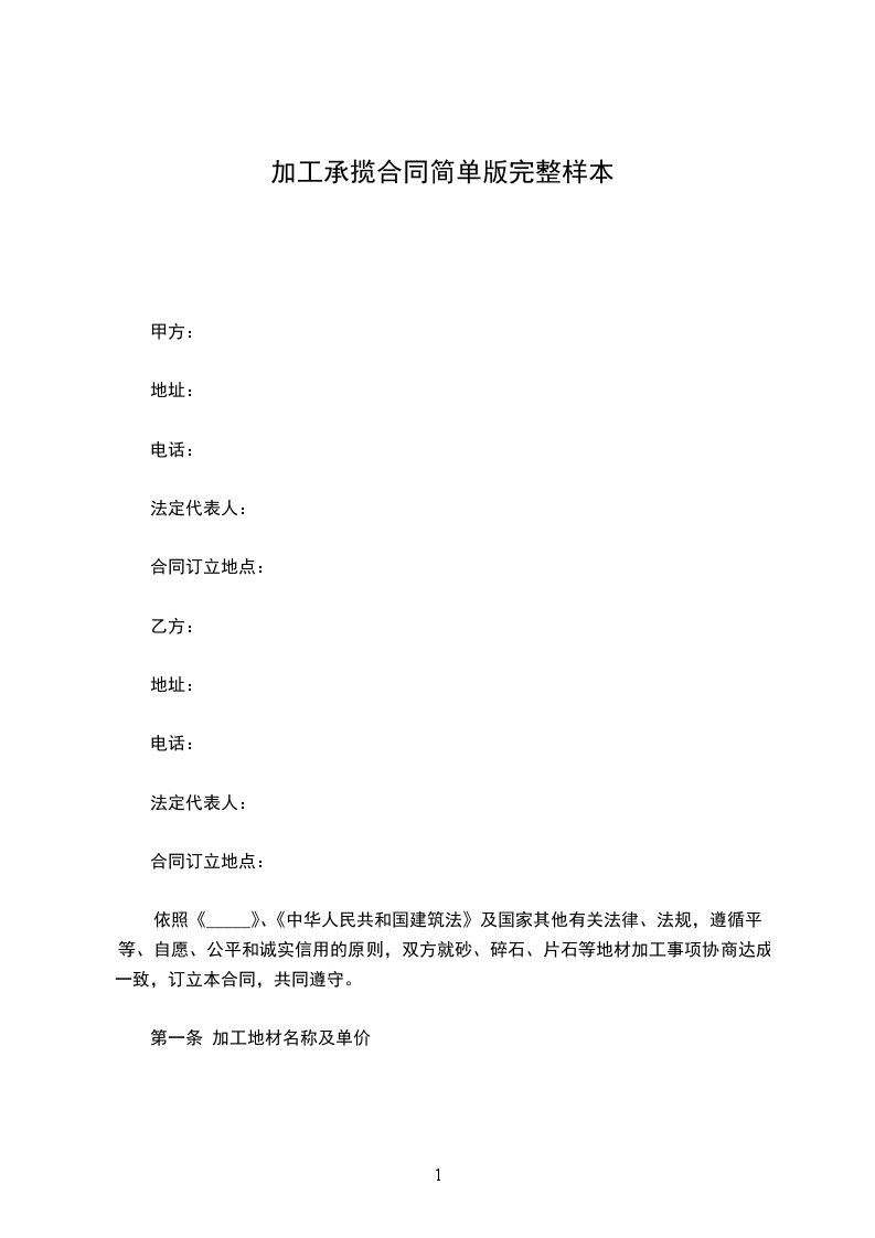 第一条 加工地材名称及单价