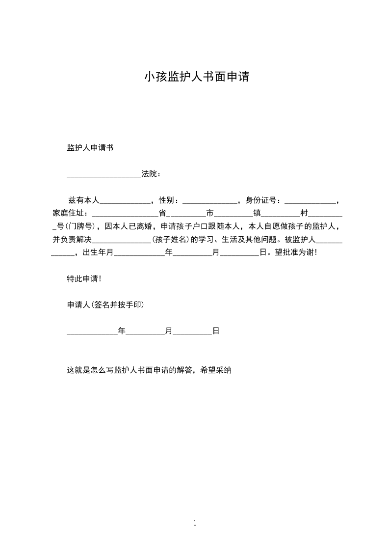 监护人姓名:_______________性别:_______________国籍:_______________出生日期:_______________身份证号:_______________住址工作单位:_______________