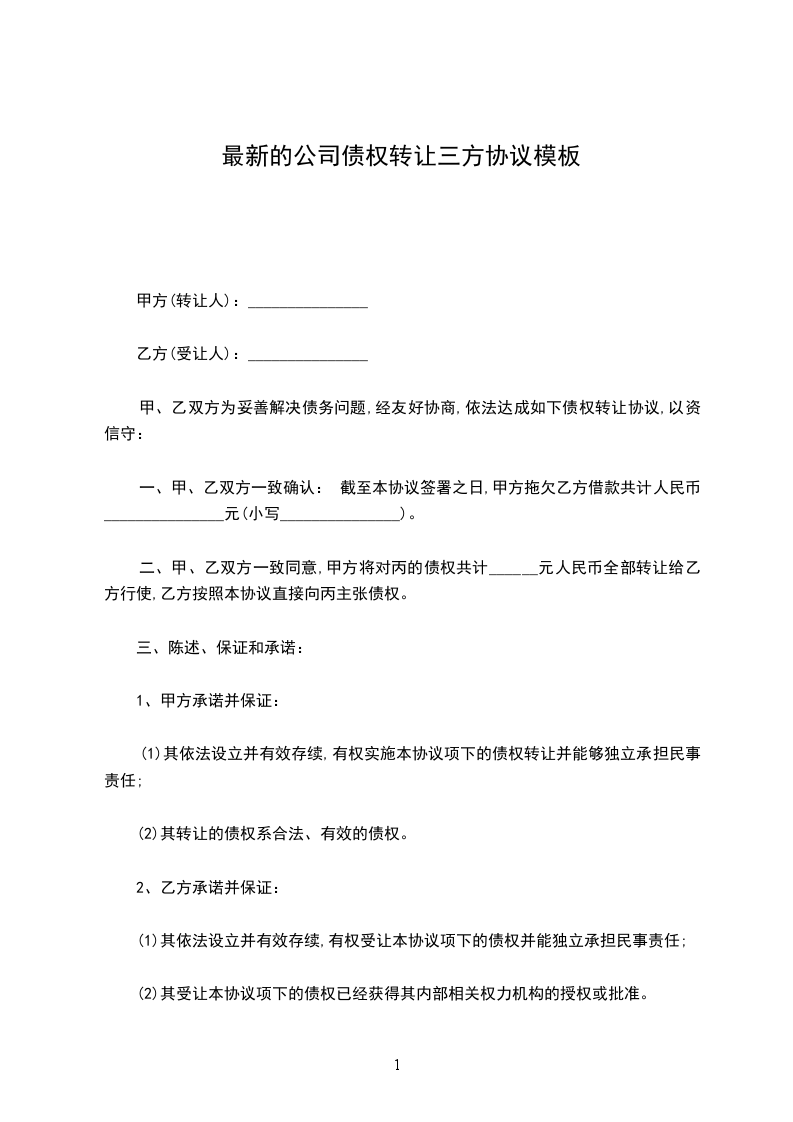 二、甲、乙双方一致同意,甲方将对丙的债权共计______元人民币全部转让给乙方行使,乙方按照本协议直接向丙主张债权。
