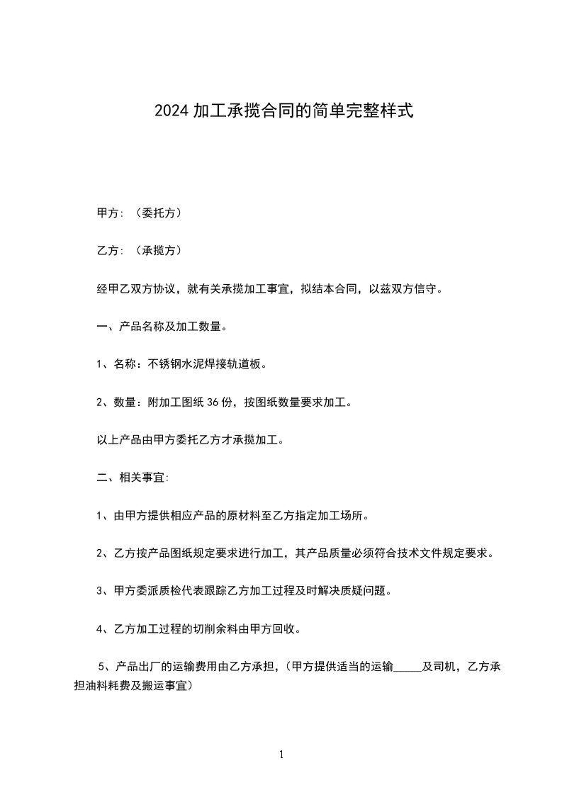 1、由甲方提供相应产品的原材料至乙方指定加工场所。