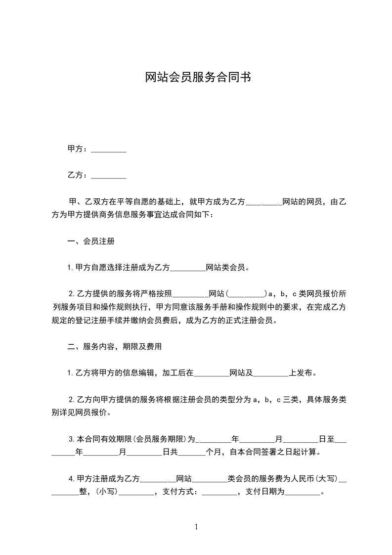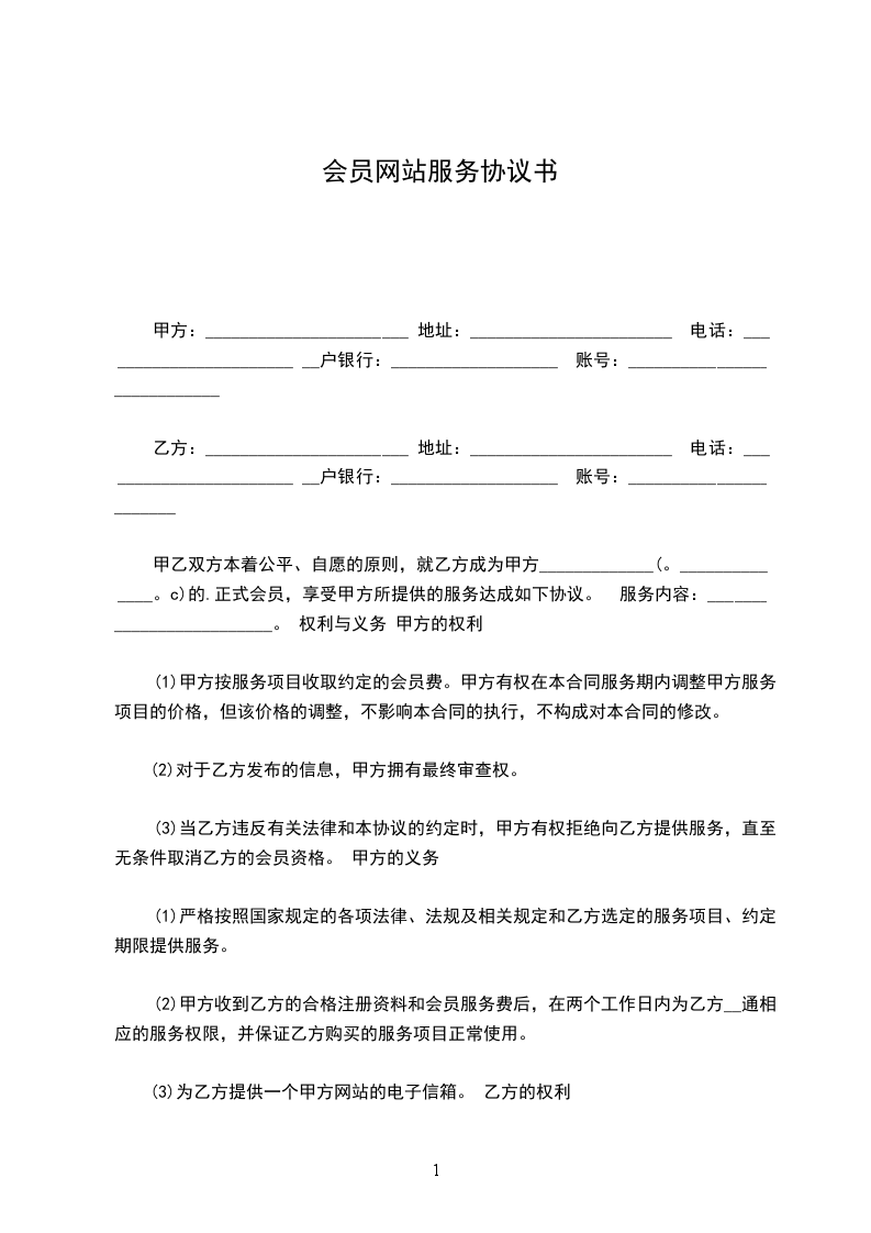 甲乙双方本着公平、自愿的原则,就乙方成为甲方中国______________网(XXX._____)的正式会员,享受甲方所提供的服务达成如下协议。