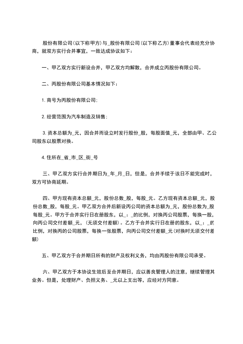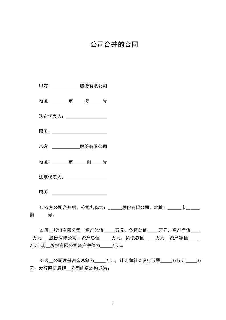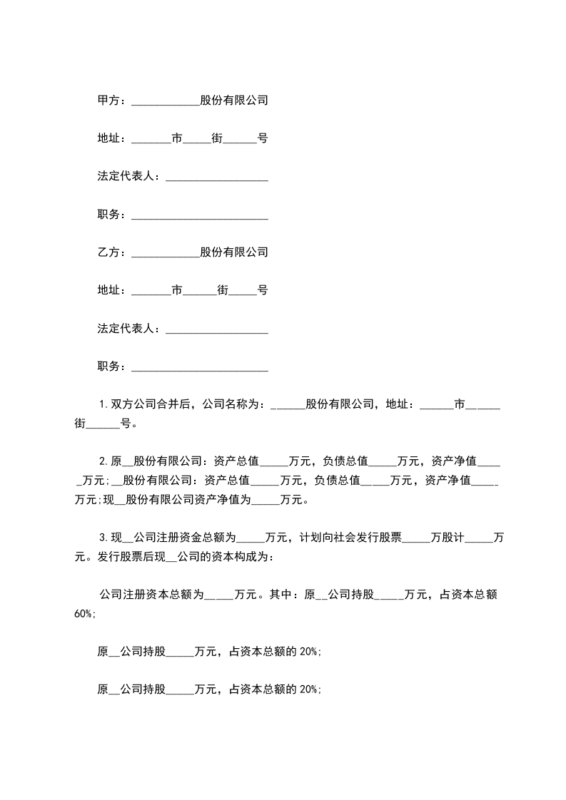 1.双方公司合并后,公司名称为:______股份有限公司,地址:______市______街______号。