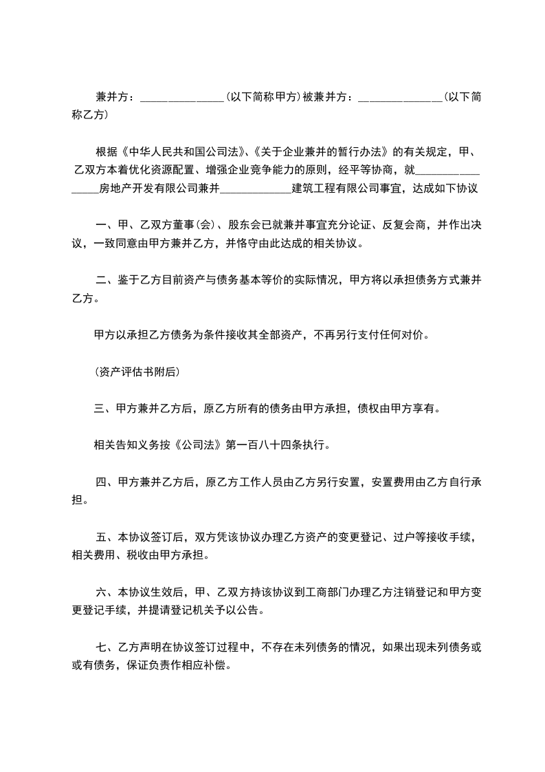 7.合同双方应为合并提供一切方便,并及时解决好原公司的有关债权债务问题。__公司应及时办理财产、帐册和文书移交,为双方合并顺利进行铺平道路。