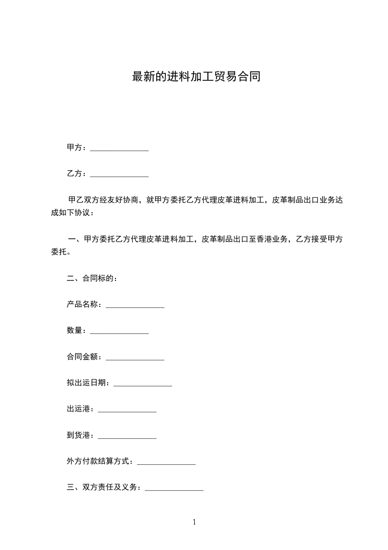 一、甲方委托乙方代理皮革进料加工,皮革制品出口至香港业务,乙方接受甲方委托。