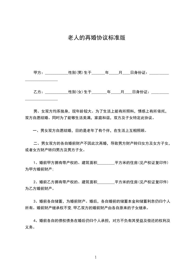 男、女双方均系独身,现年龄较大。为了生活上能有所照料,情感上有所依托,双方自愿结婚。同时为了能够生活美满,家庭和谐,双方及子女特定此协议。