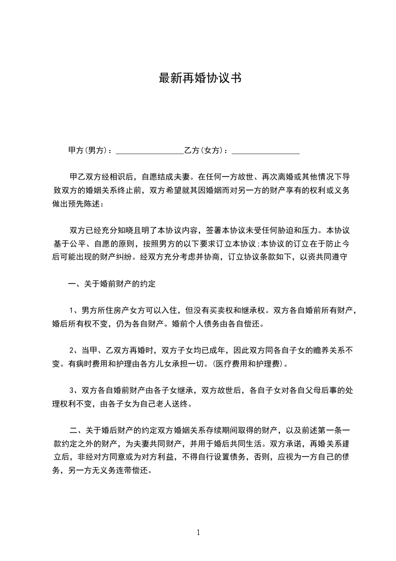 根据国家相关法律规定,双方通过平等协商达成共识后,本着“三不变”原则,即财产所有权、继承权、亲子关系三个方面婚后保持不变,签署“再婚协议书”