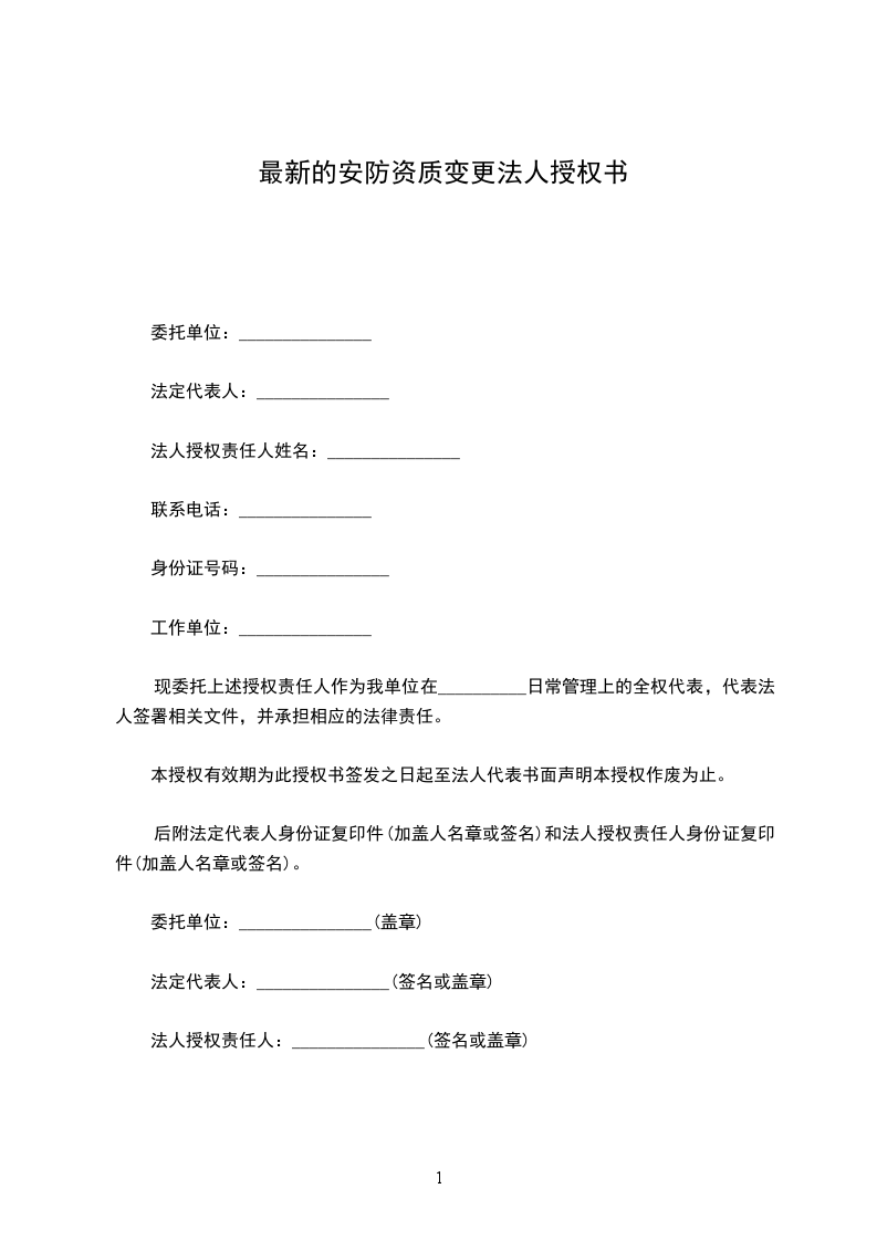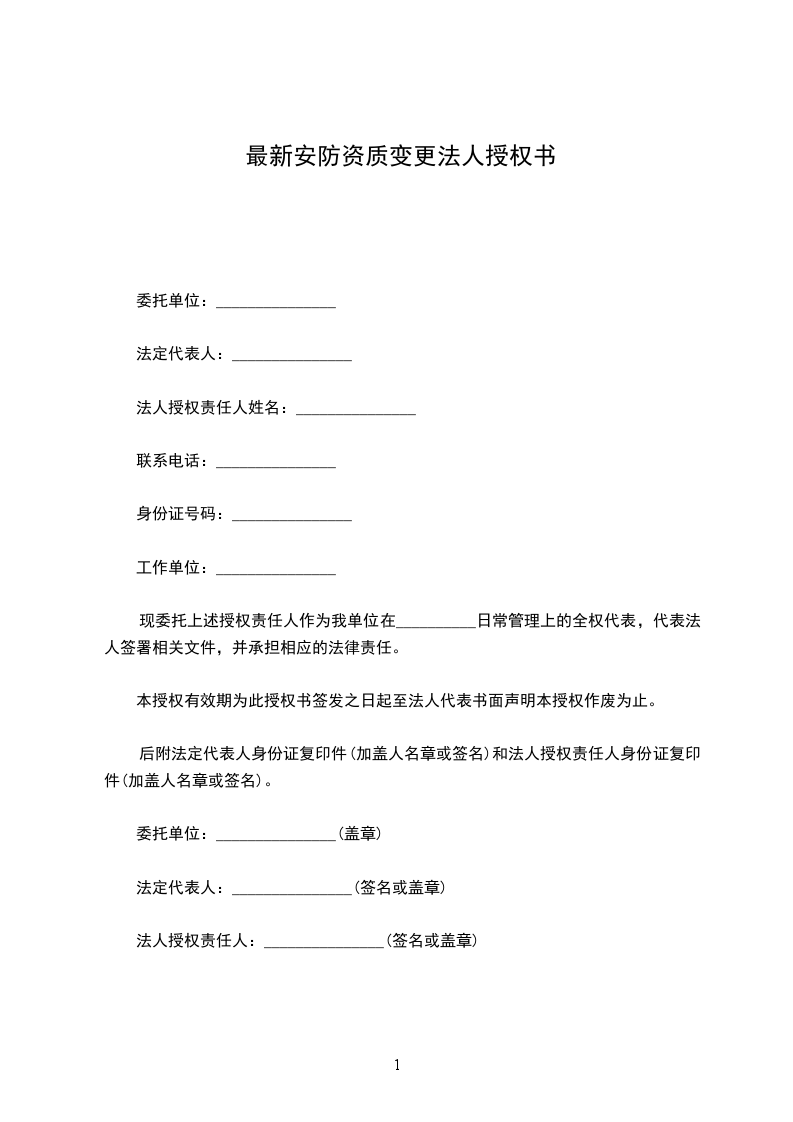 现委托上述授权责任人作为我单位在__________日常管理上的全权代表,代表法人签署相关文件,并承担相应的法律责任。