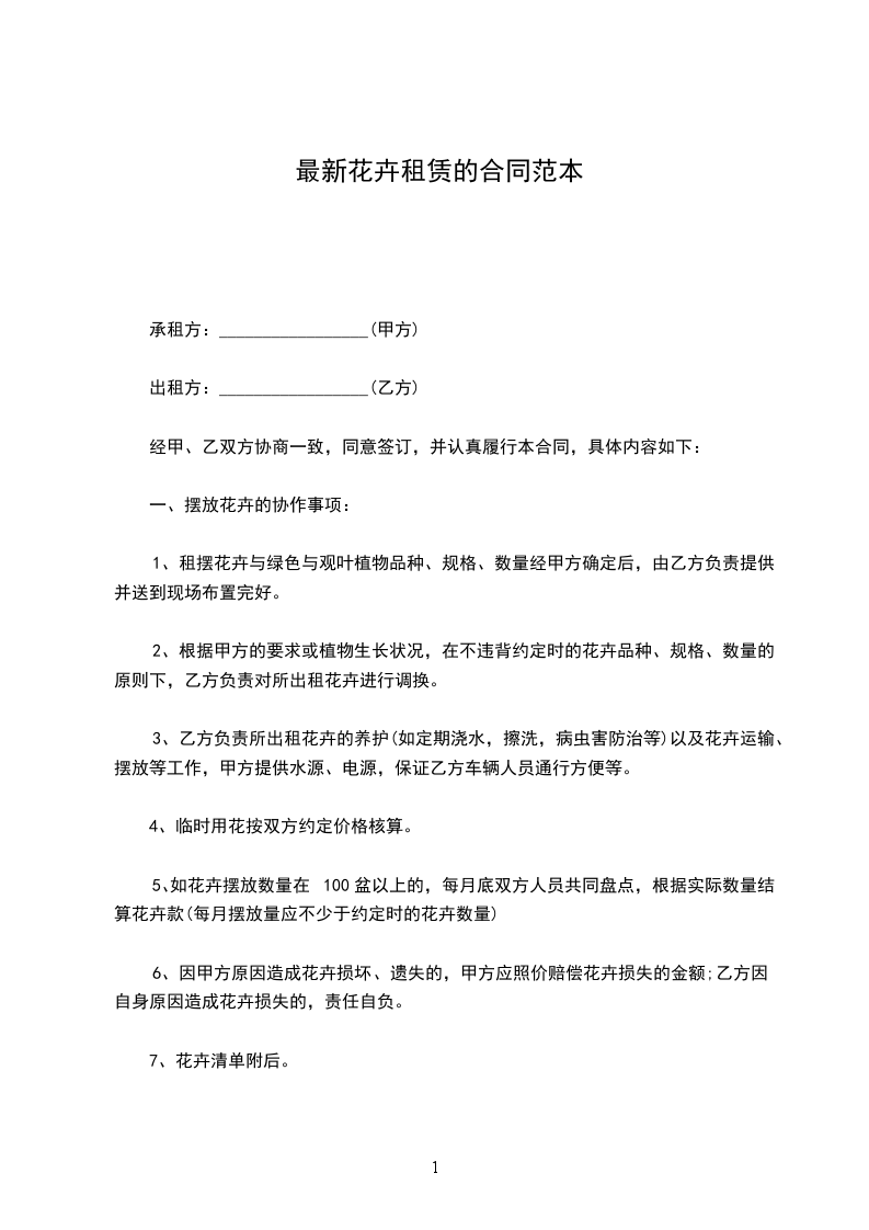 2、根据甲方的要求或植物生长状况,在不违背约定时的花卉品种、规格、数量的原则下,乙方负责对所出租花卉进行调换。