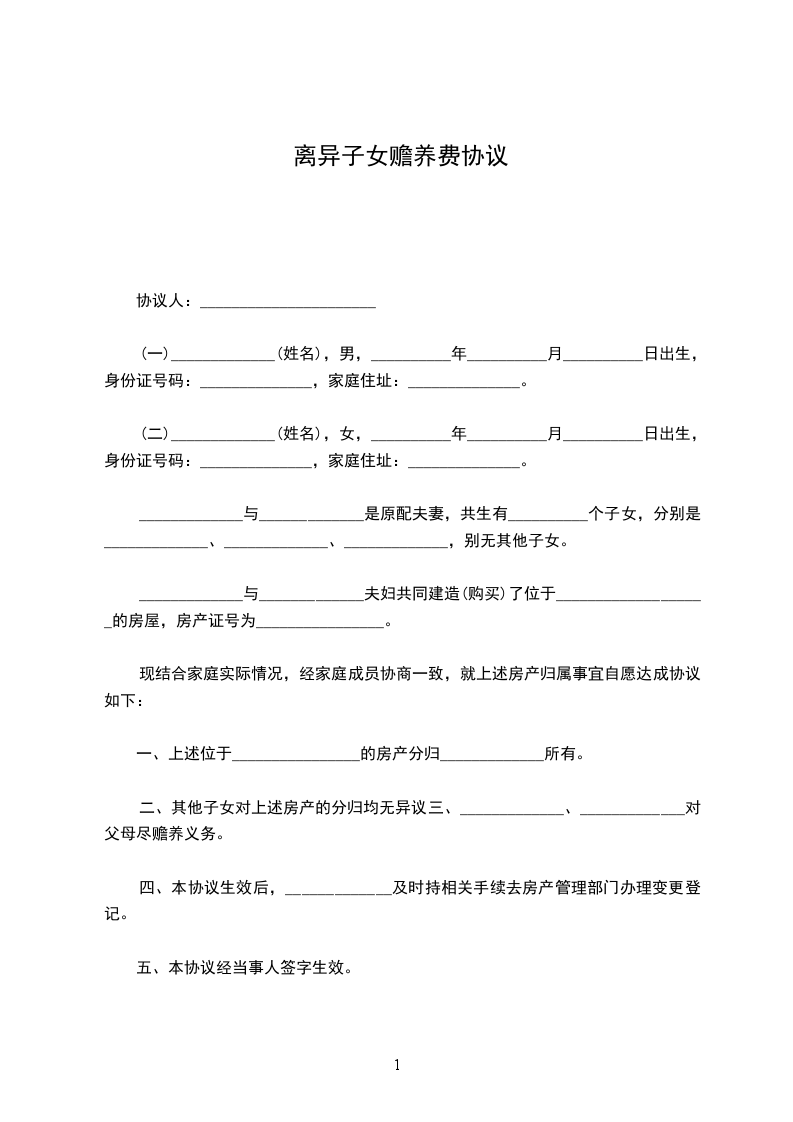 五、本协议一式叁份,双方签字后生效,甲、乙双方各执一份,一份交派出所办理孩子的户口迁移手续。