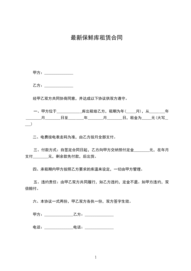 一、甲方位于_____________库出租给乙方,租期为年(_____月),从________年________月________日至________年________月________日,租金为_____元(大写_____)