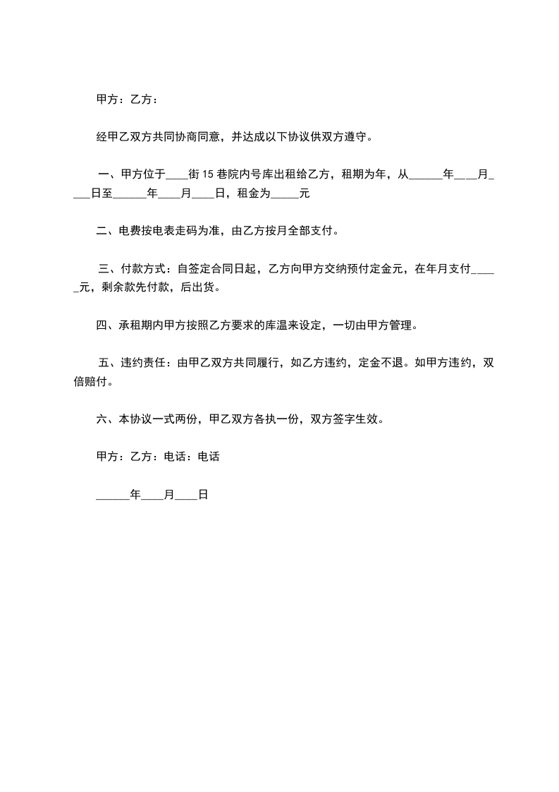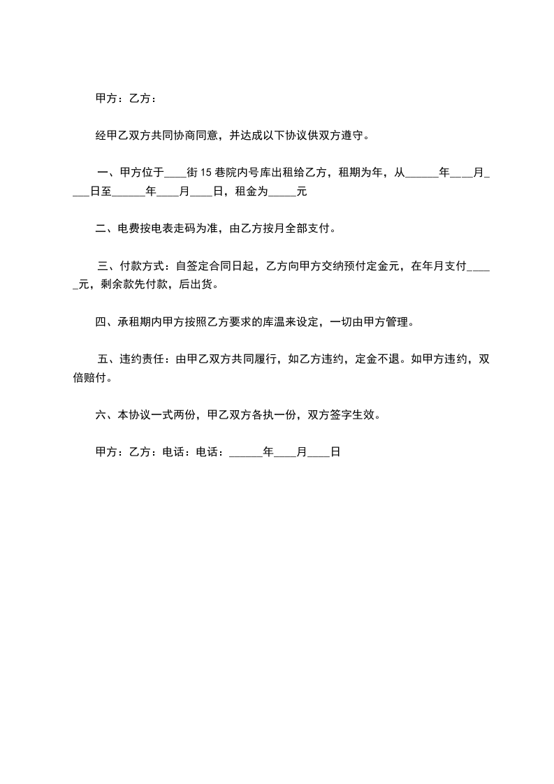 四、承租期内甲方按照乙方要求的库温来设定,一切由甲方管理。