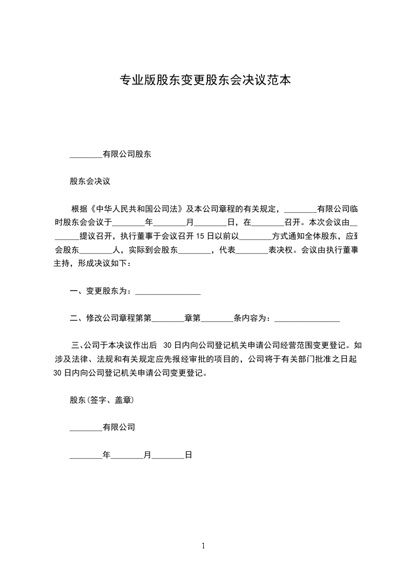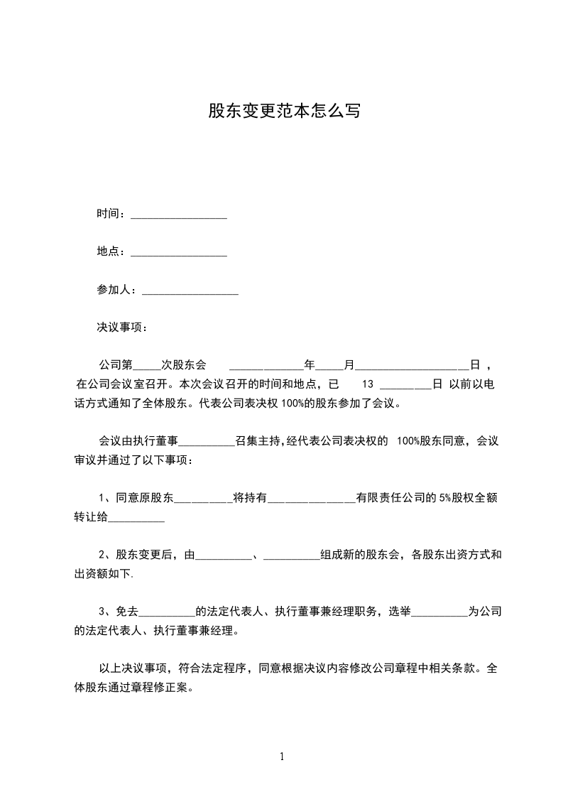 1、同意原股东__________将持有_______________有限责任公司的5%股权全额转让给__________;