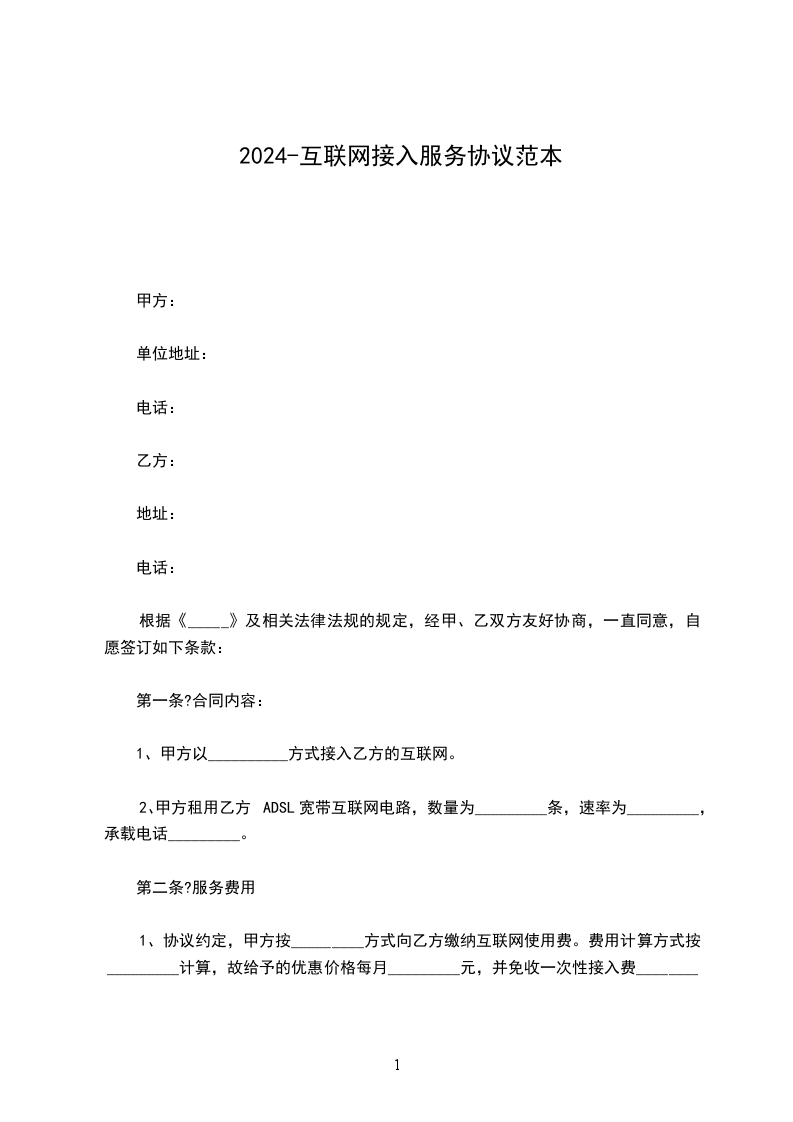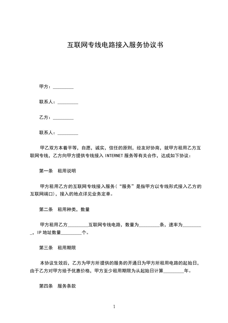 1、协议约定,甲方按_________方式向乙方缴纳互联网使用费。费用计算方式按_________计算,,故给予的优惠价格每月_________元,并免收一次性接入费_________元,电路竣工用户签字确认后,乙方开始向甲方收取费用,电路竣工七日内甲方需交纳首月网费;甲方按期交纳接入服务预付款,为本协议生效的先决条件。