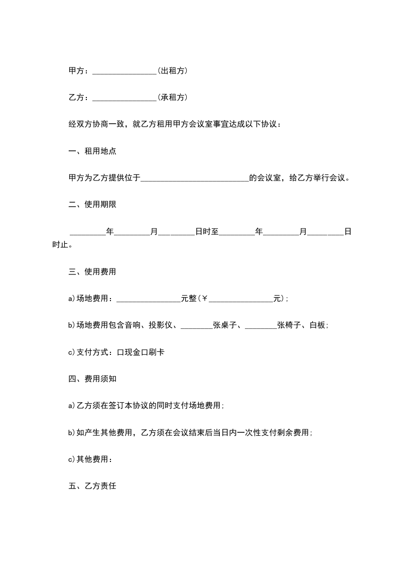 经双方协商一致,就乙方租用甲方会议室事宜达成以下协议: