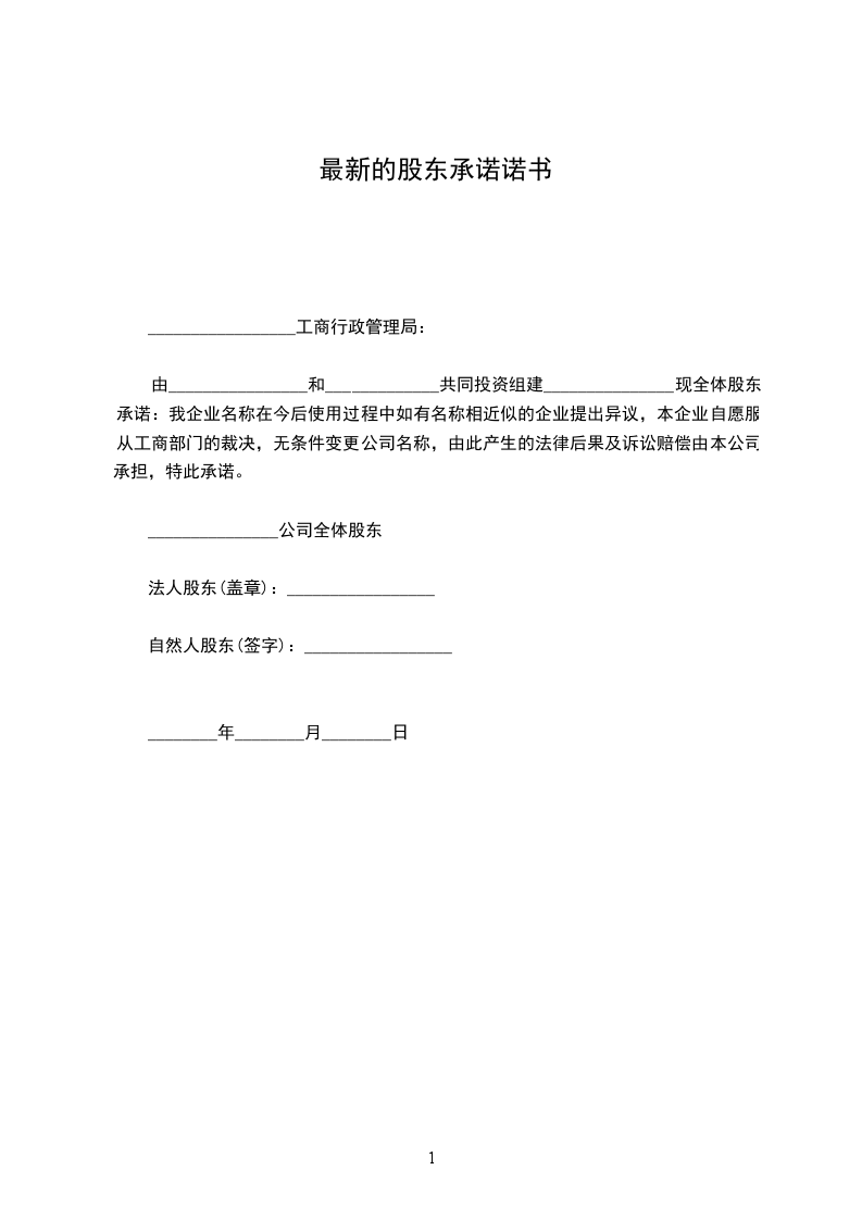 由________________和_____________共同投资组建_______________现全体股东承诺:我企业名称在今后使用过程中如有名称相近似的企业提出异议,本企业自愿服从工商部门的裁决,无条件变更公司名称,由此产生的法律后果及诉讼赔偿由本公司承担,特此承诺。