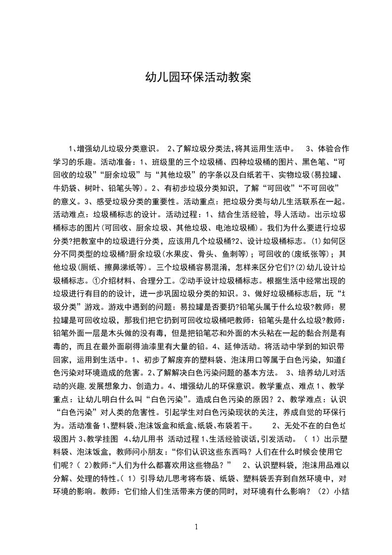 1、教学重点:让幼儿明白什么叫“白色污染”。造成白色污染的原因?