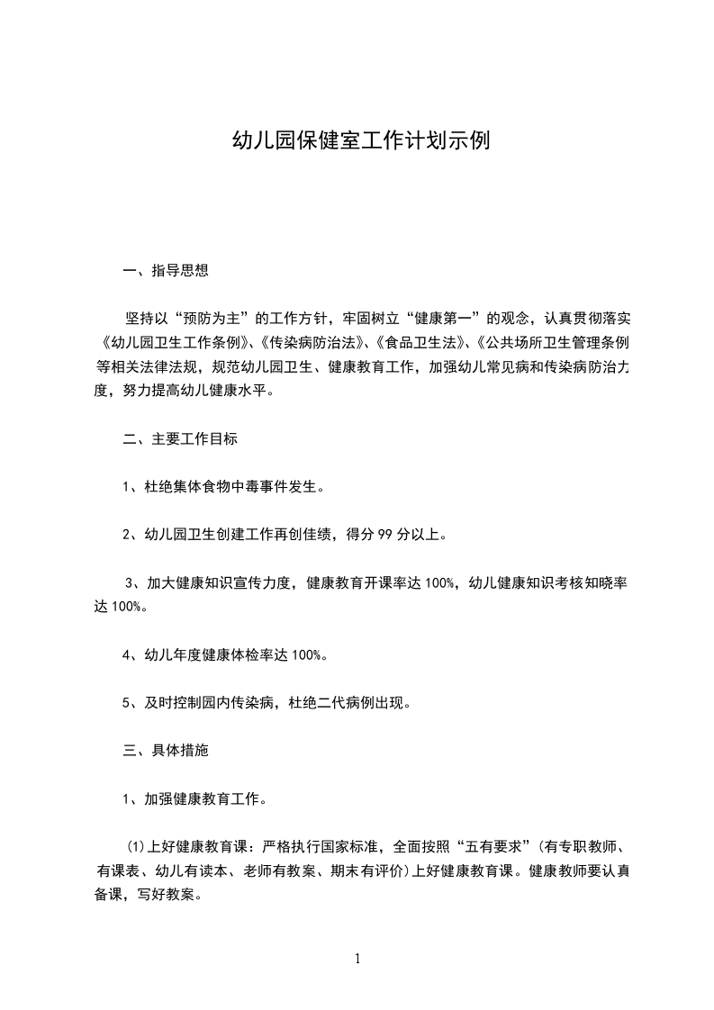 (1)规范管理幼儿园卫生:建立健全卫生管理制度,责任到班、到人,制定年度及学期工作计划,按时完成各项工作任务。