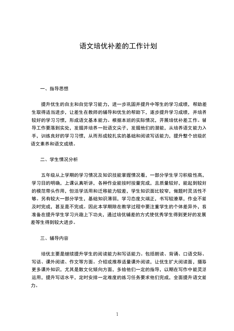 结合开学接班以及近五周的学习观察,特别是结合刚刚结束的第一次月考成绩,我班的培优补差工作急需纳入正轨。为有效地做好此项工作,确实提升我班的语文教学质量,做到“差生脱贫”,优生更棒,特制订本学期的培优补差计划如下。